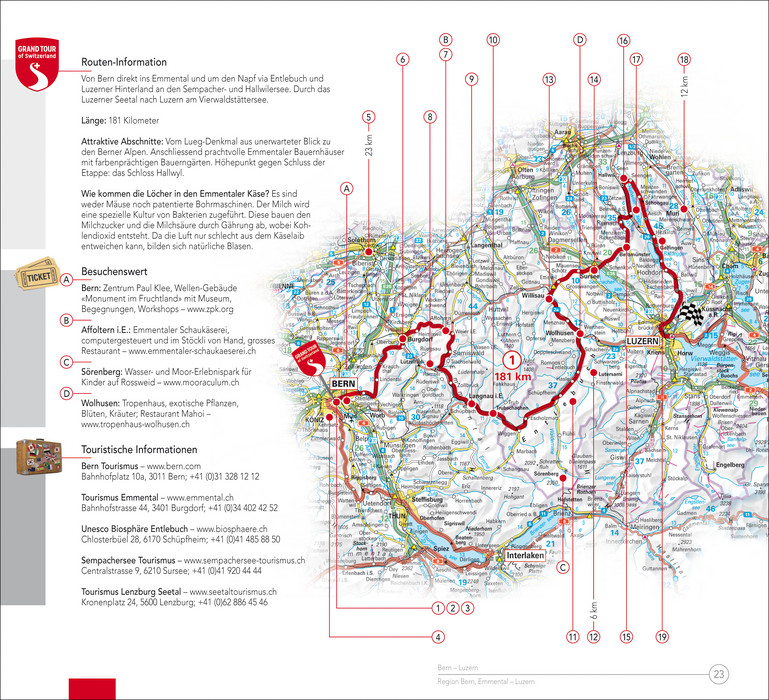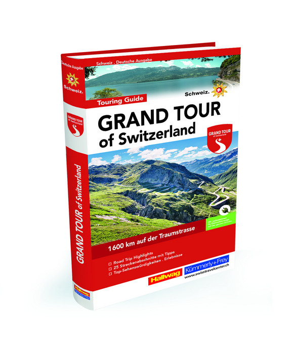 Der Touring Guide „Grand Tour of Switzerland“ von 288 Seiten Umfang berichtet über Touren-Highlights, bringt Tipps zu den 25 Streckenabschnitten und zeigt die Top-Sehenswürdigkeiten. Dem Reiseführer ist eine Karte Schweiz 1:500 000 beigelegt.