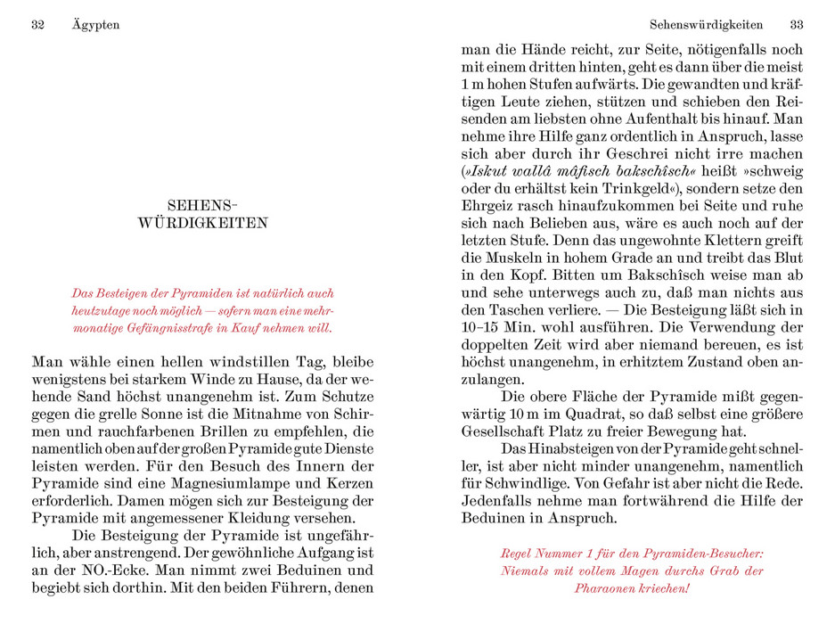 Wussten Sie, dass 60 Flaschen französischer Rotwein ins Reisegepäck des modernen Ägypten-Touristen gehören? Oder dass man für eine Indien-Reise am besten sein eigenes Waschbecken mitbringt? Nein? Dann wird es Zeit für die interessantesten Fundstücke und skurrilsten Anekdoten aus den ersten 100 Jahren der in Rot gebundenen "Handreichungen für Schnellreisende" von Karl Baedeker, dem Erfinder des modernen Reisens. Herrlich komisch moderiert von Bestseller-Autor Christian Koch, reist der geneigte Leser mit den schönsten historischen Zitaten entlang des Rheins, durch die berühmten Strandbäder Belgiens, ans Mittelmeer und zu den Pyramiden Ägyptens. Interessanter, origineller und unterhaltsamer lassen sich die Anfänge unseres heutigen Tourismus nicht erleben.