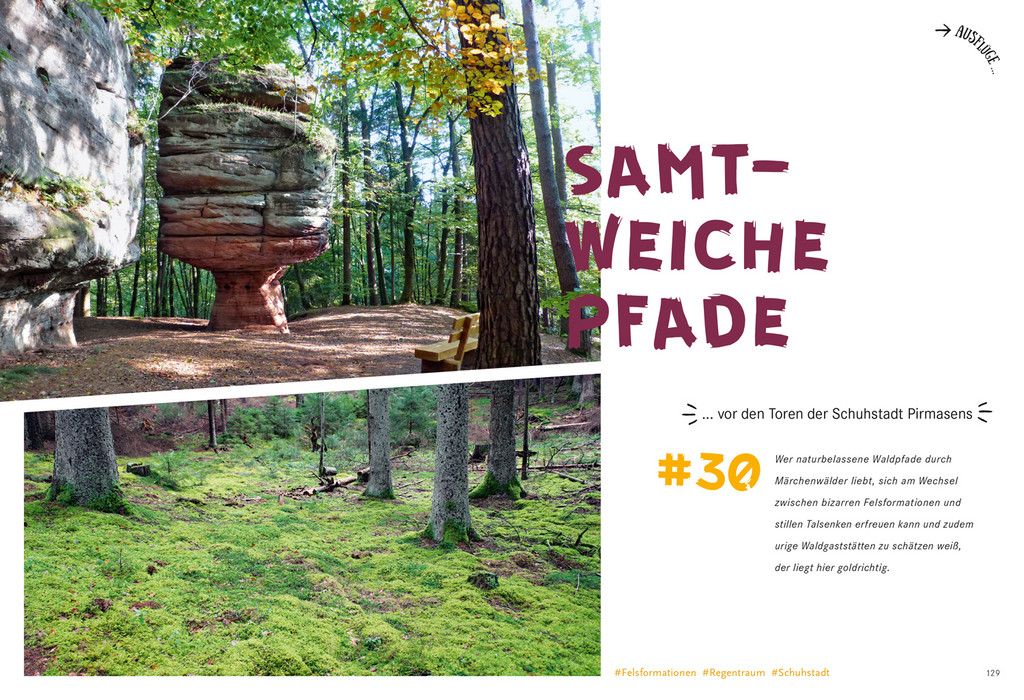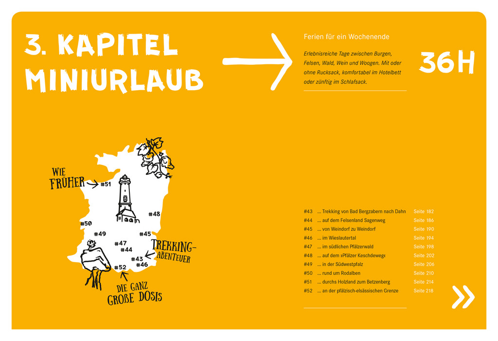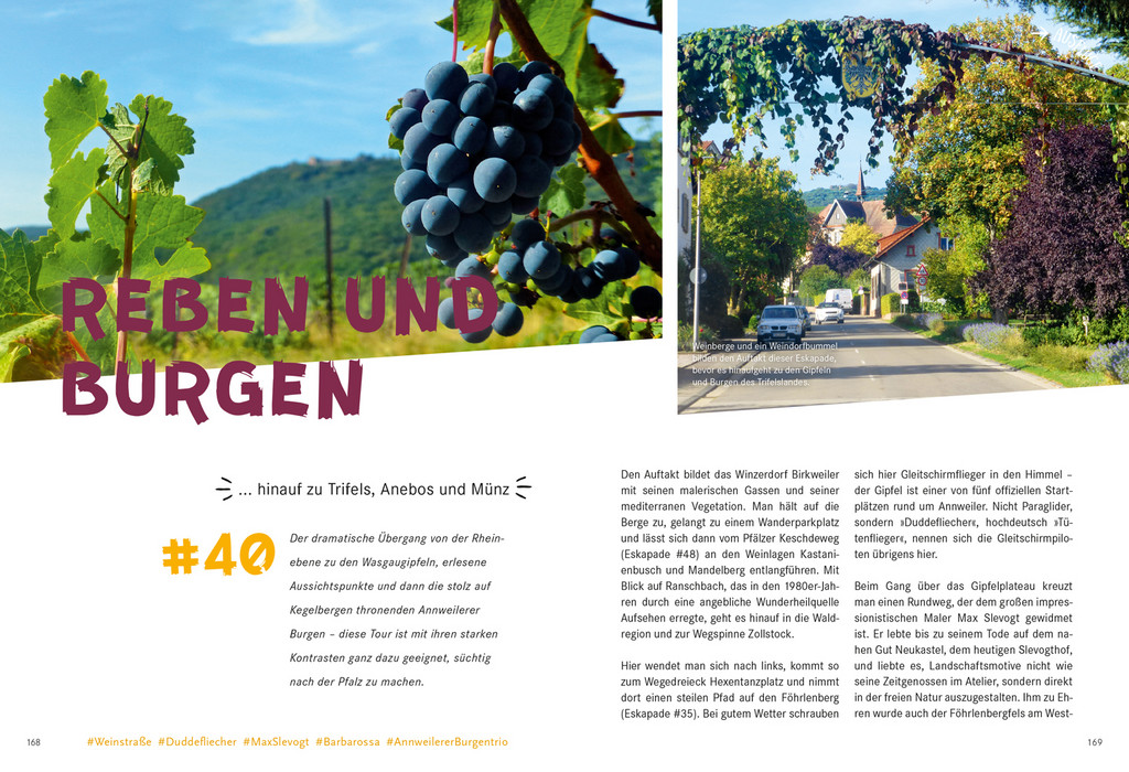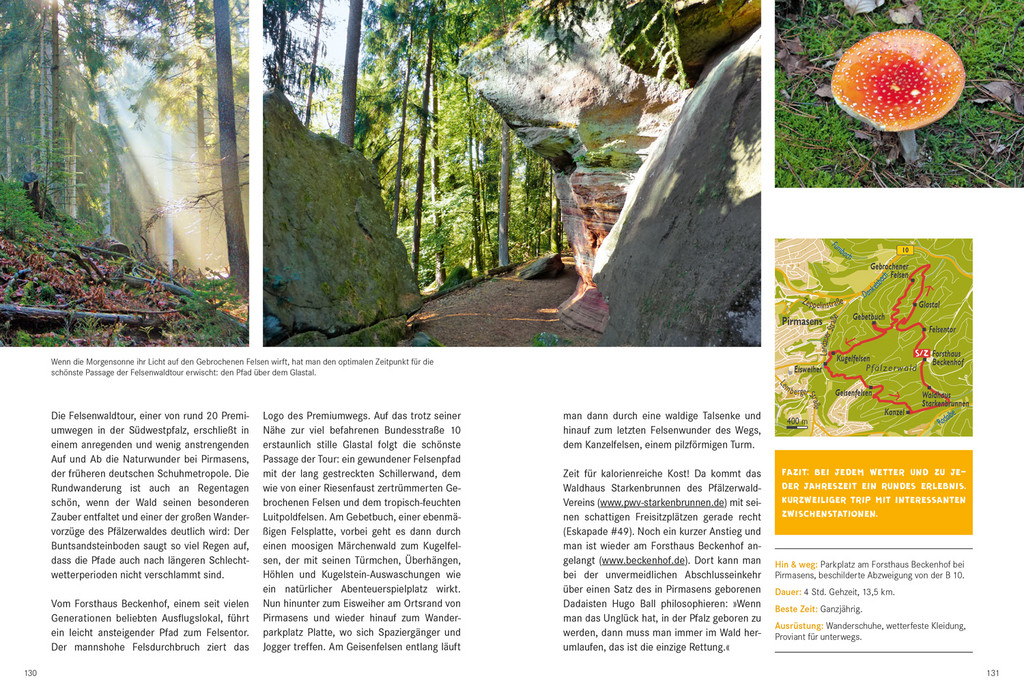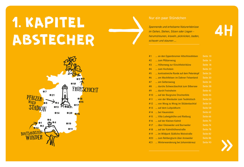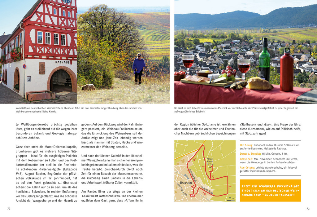 Abstecher. Ausflüge. Miniurlaube.Ob wandern, radeln, paddeln oder in aller Ruhe die Natur genießen: 52 kleine und große Eskapaden machen Lust, die schönsten Ecken in der Pfalz zu entdecken. Für wenige Stunden, einen Tag oder ein Wochenende – unwiderstehliche Ausflüge ins Grüne von den Weinbergen in den Pfälzerwald warten. Verwunschene Burgen erkunden, bizarre Felsgestalten bestaunen an stillen Woogen träumen ... – es ist so einfach, mehr zu erleben als das Bekannte. Also ab nach draußen!