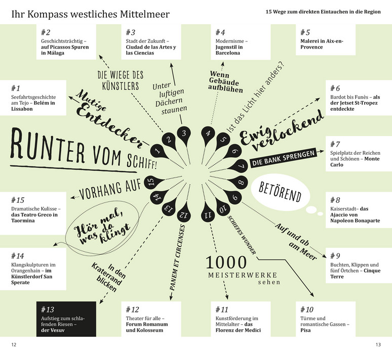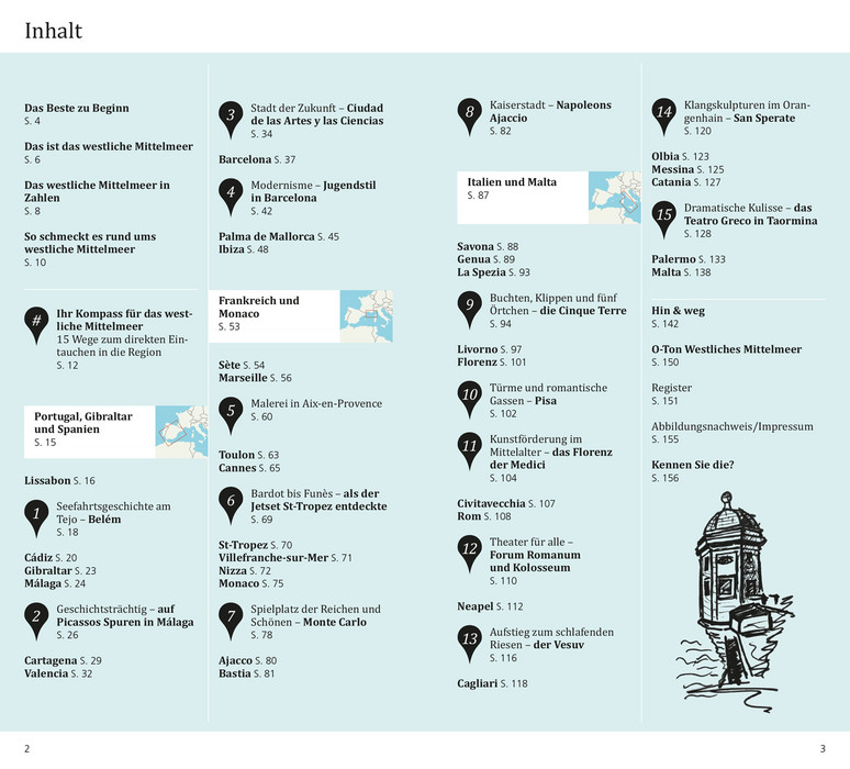 Im westlichen Mittelmeer wird jeder Landgang zum Abenteuer. Mit den 15 »Direkt-Kapiteln« des Reiseführers von Lilly Nielitz-Hart und Simon Hart können Sie vor Ort bleiben und die Hafenstädte erkunden, direkt mitten in das Geschehen eintauchen, Ausflüge ins Umland unternehmen, aktiv in der Natur entspannen, den nächsten Strand ansteuern und die Highlights kennenlernen: Barcelona, Valencia, Málaga und Cádiz, Palma de Mallorca und Ibiza, Gibraltar, Lissabon und Taormina, Marseille, Cannes, Nizza, Monte-Carlo und Ajaccio auf Korsika, Florenz, Pisa und Cinque Terre. Dabei können Sie wunderschöne Landschaften, die Zeugnisse einer reichen Geschichte und Kultur und den lebendigen Alltag auf eigene Faust erkunden. Und dann über Nacht das nächste spannende Ziel ansteuern. Mit den Übersichtskarten, genauen Stadtplänen und dem separaten großen Faltplan können Sie nach Lust und Laune Mittelmeer-Metropolen, Buchten und Inseln erkunden.
