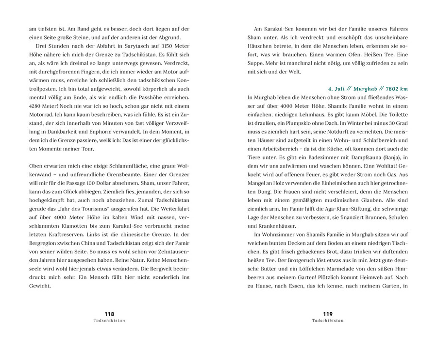 Solotour statt Kaffeefahrt. Mit 64 Jahren steigt Margot Flügel-Anhalt zum ersten Mal in ihrem Leben auf ein Motorrad und wagt das ganz große Abenteuer: Von ihrem kleinen Dorf in Nordhessen aus bricht sie auf zum Ziel ihrer Träume: dem Pamir Highway in Zentralasien. 117 Tage und 18.046 Kilometer lang ist sie unterwegs, durch 18 Länder – mit 11 Pferdestärken. Technische Pannen, schwere Stürze, totale Erschöpfung – mit den Herausforderungen wächst auch die Hilfsbereitschaft der fremden Menschen am Wegesrand, die ihre Reise am Ende so unvergesslich machen.