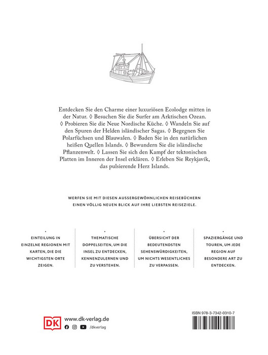 In diesem Bildband werfen über 300 kunstvolle Farbfotos einen ganz besonderen Blick auf Bekanntes und weniger Bekanntes und lassen Sie staunen angesichts der überwältigenden Naturwunder Islands. Von breiten Gletscherflüssen, schneebedeckten Kraterlandschaften und arktischen Denkmälern bis zu den tanzenden Polarlichtern Islands – die ästhetische Bildsprache macht dieses Reisebuch Island außergewöhnlich. Wild und unberührt, märchenhaft und mystisch, Island ist ein Land der Extreme. Egal ob Sie Islandpferden, Polarfüchsen oder Blauwalen begegnen, in heißen Naturquellen wie der Blauen Lagune baden, die gewaltigen Geysire Islands bestaunen, die Troll-Halbinsel Tröllaskagi besuchen, auf den Spuren isländischer Sagas wandeln oder die nördlichste Hauptstadt der Welt Reykjavík erkunden – Sie werden dieses Land nie vergessen! Von der wundervollen Seenlandschaft Mývatn mit eindrucksvollen Wasserfällen, dampfenden Geothermalfeldern, Höhlen und Kratern über die farbenfrohe Bergwelt Landmannalaugar mit den bemerkenswerten Rhyolith-Bergen und majestätischen Lavafeldern bis zur Halbinsel Snæfellsnes, die so viele verschiedene Sehenswürdigkeiten aufweist, dass sie auch „Island in Miniatur“ genannt wird. Das Land der Sagas, Islands Frauen, Die Geheimnisse der Geothermie, Islands Tier- und Pflanzenwelt, Das Leben auf dem Land, Islands Badekultur und viele weitere interessante Themen bringen Land und Menschen nahe. Porträts von Einheimischen geben tiefe persönliche Einblicke in den Alltag auf der Insel. Der energiegeladene Westen mit dem vergletscherten Vulkan Snæfellsjökull, dessen Form ein wenig an Japans Fuji erinnert. Das Land der Wildnis, Die Westfjorde, ein riesiges Plateau, in das einstige Gletscher ein wildes Durcheinander aus tiefen Fjorden gegraben haben. Der Norden, der nur noch einen Katzensprung vom Polarkreis entfernt ist. Das Hochland, die riesige Wildnis, die gänzlich unbewohnt von Menschen ist. Die Ostfjorde, mit seltsamen orangefarbenen Bergen, die über den Meereswellen aufragen. Der Süden mit dem 350 Kilometer langen schwarzen Sandstrand. Und natürlich Reykjavík, die stolze Hauptstadt des Nordens. Aufregende Routen wie Vier Tage im Hochland oder Drei Tage in Reykjavík und auf Reykjanes bieten Augenschmaus, Abenteuer und Sehenswürdigkeiten satt.