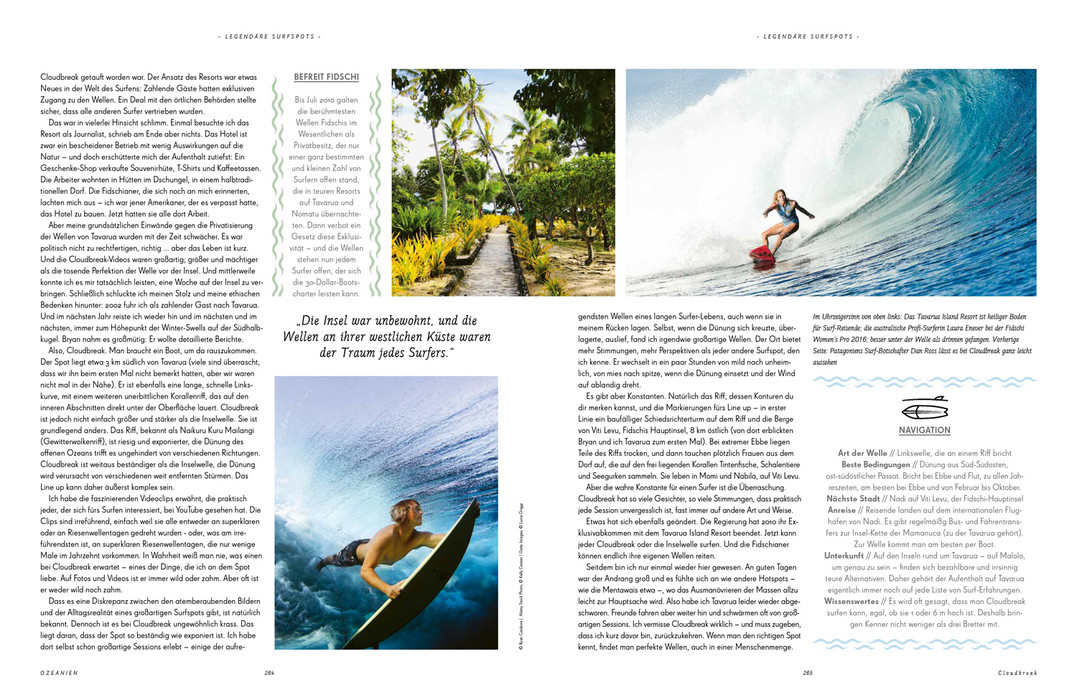 Wo liegen die besten Surfspots weltweit und was macht sie so einzigartig? Lonely Planet hat 50 Surfer gebeten, ihren Traumspot mit einer persönlichen Geschichte vorzustellen. Begleitet werden diese von irritierend schönen Bildern und praktischen Informationen für den Fall, dass man gleich aufbrechen möchte – zum berühmten Hilton Beach in Tel Aviv, an die wilde Pazifikküste von Costa Rica oder in die australische Hippie-Surfhochburg Byron Bay. Mit dem Lonely Planet im Gepäck steht dem nächsten Surftrip nichts mehr entgegen!