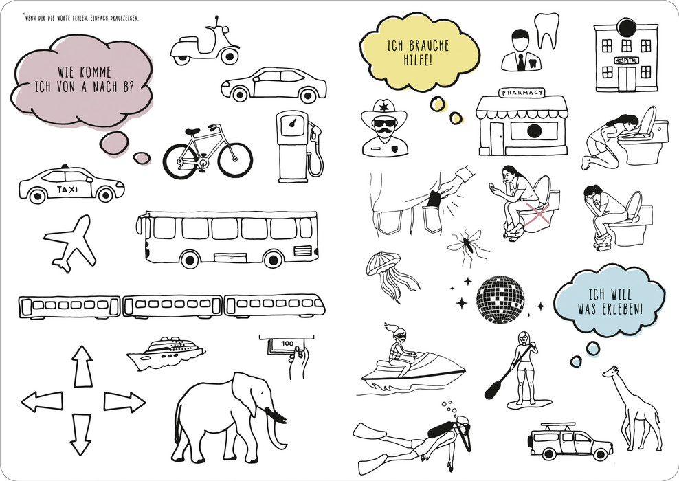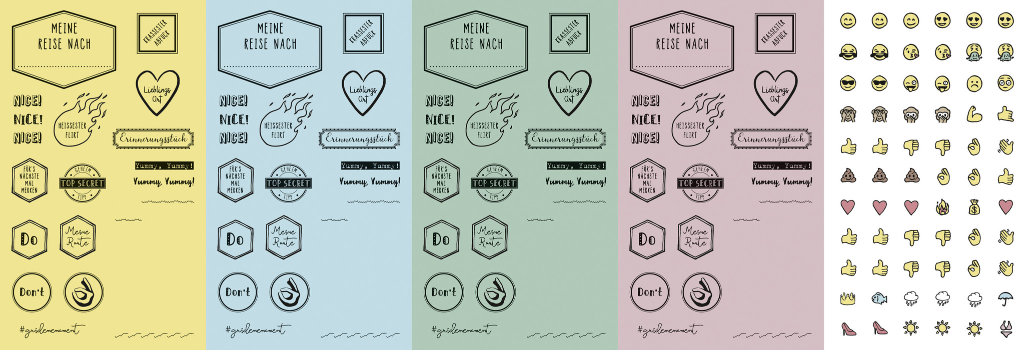 Dein individuelles Reisetagebuch mit freien Seite, Zeigewörterbuch, kleinen Extras & Stickerbogen!