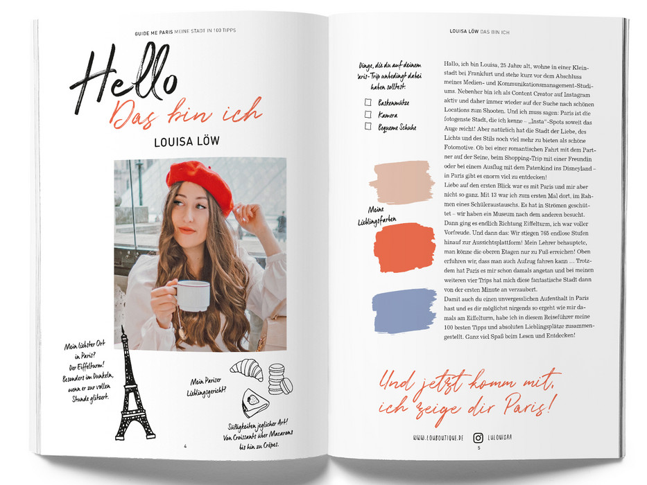 Meine Stadt in 100 Tipps: Die Bloggerin Louisa Löw zeigt dir ihre Lieblingsstadt Paris und verrät an welcher Ecke man den perfekten Schnappschuss macht oder wo die Açai Bowl am besten schmeckt! Gepaart mit den typischen Must-See-Sights erlebst du Paris einmal ganz anders. Und eins ist garantiert: Dein Instagram-Feed wird heißlaufen!