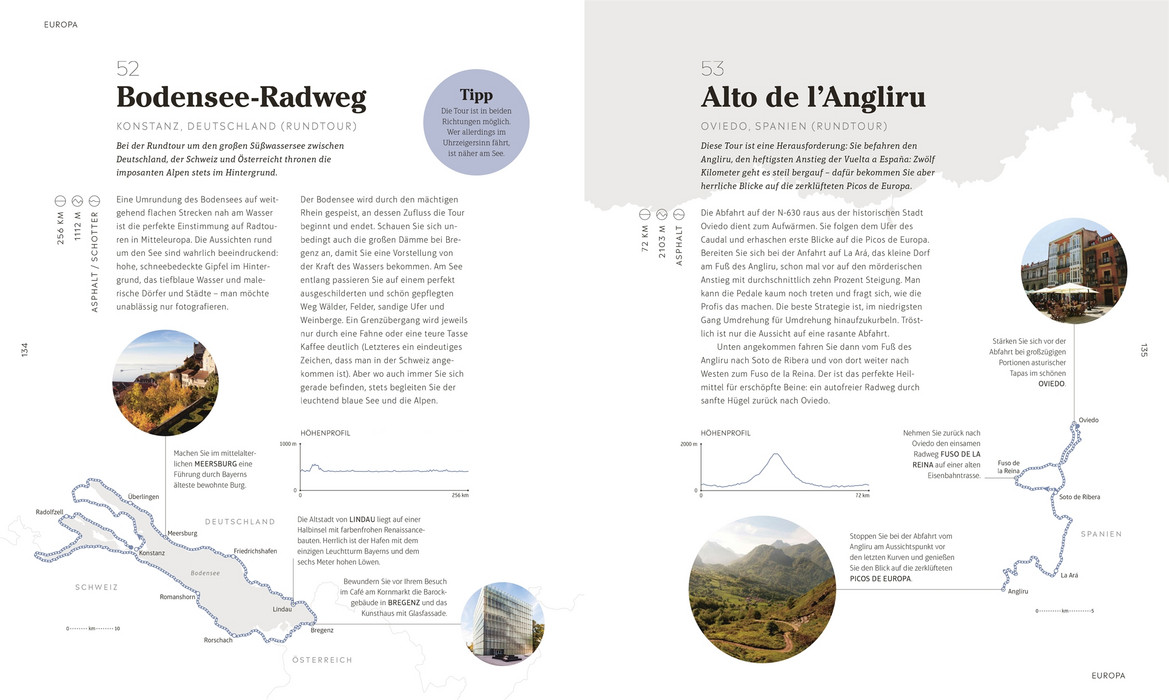 Die Welt auf dem Fahrrad zu erkunden ist Freiheit pur! Schwingen Sie sich auf den Sattel und entdecken Sie mit diesem : Vom vielseitigen Bodenseeradweg über die Alpe d'Huez bis zum Point Reyes Loop in Kalifornien. Atemberaubende Fotos, fesselnde Tourenbeschreibungen, anschauliche Karten, Höhenprofile und hilfreiche Tipps bereiten Sie optimal vor auf Ihr . Erleben Sie die spektakulärsten Landschaften und eindrucksvollsten Kulturen der Welt so hautnah und intensiv wie nie – ganz nach ihrem eigenen Tempo. Dieser bemerkenswerte entführt Sie auf – ob Tagestouren, mehrtägige oder mehrwöchige Touren. Geeignet für Mountainbiker, Rennrad- und Straßenfahrer sowie für Hobbyradler mit wenig Erfahrung. • : Ob in 1213 km auf dem vielseitigen Donau-Radweg durch vier Länder oder auf einer der höchsten Straßen der Welt in 1.298 km von Pakistan nach China radeln – lassen Sie sich bei der Planung Ihres Radabenteuers inspirieren. • : Zahlreiche Bilder sowie detaillierte Beschreibungen und übersichtliche Karten zu jeder Tour mit Infos zur Distanz, Steigung und Wegbeschaffenheit erleichtern die Organisation der Radreise. • zur Reisevorbereitung, zu Einkehrmöglichkeiten, Sehenswürdigkeiten, kulturellen und geschichtlichen Hintergründen, typischen Spezialitäten oder zur Verlängerung und Verkürzung der Touren machen das Buch zum idealen Reisebegleiter. • : Zahlreiche Fahrradrouten können kostenlos auf der DK-Website heruntergeladen und auf Navigations-Apps (wie z.B. Komoot) geöffnet werden. Für maximale Mobilität auf Ihrem Radtrip!