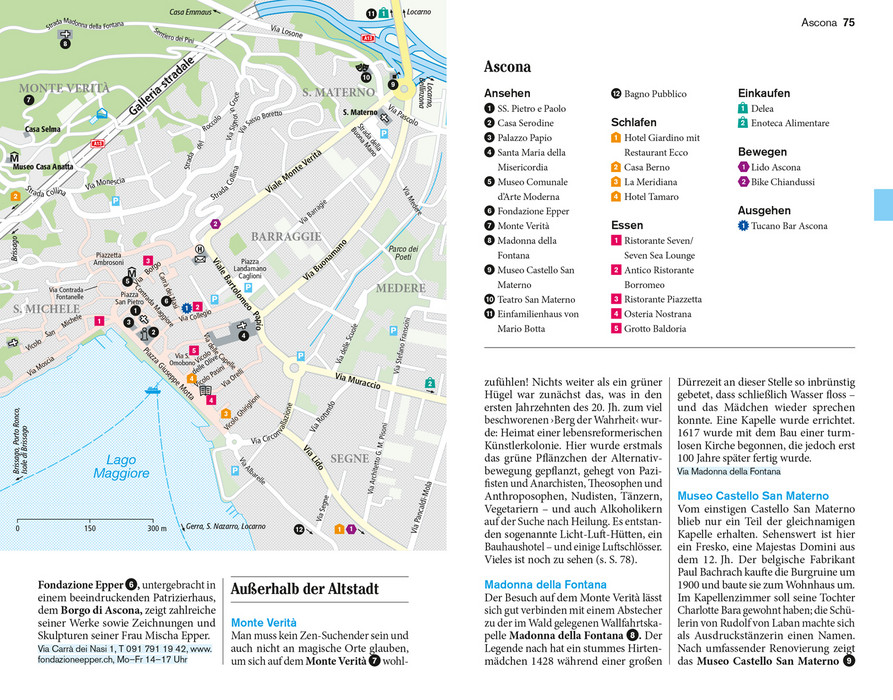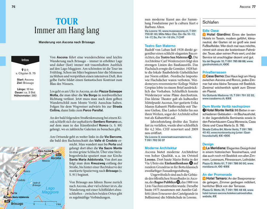 • Die Karten: 5 Citypläne und zahlreiche Tourenkarten, eine Übersichtskarte mit den Highlights des Tessin, Schnellüberblicke zu jeder Region plus eine große Reisekarte