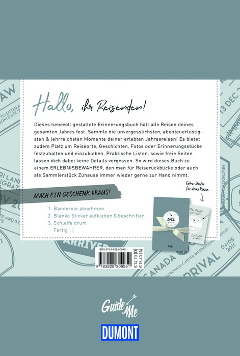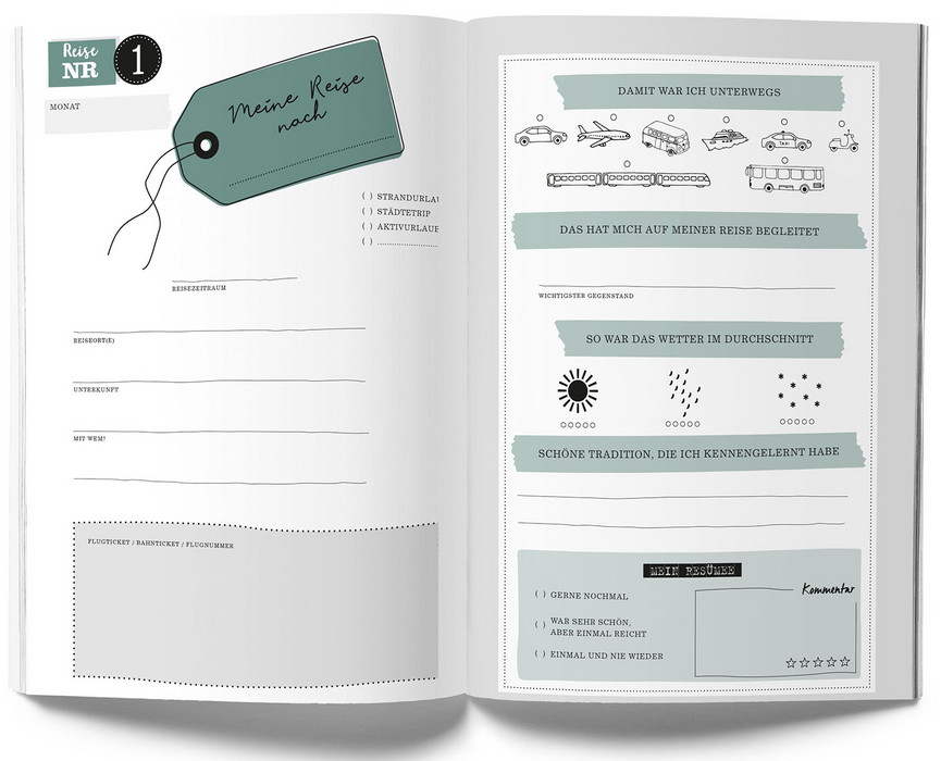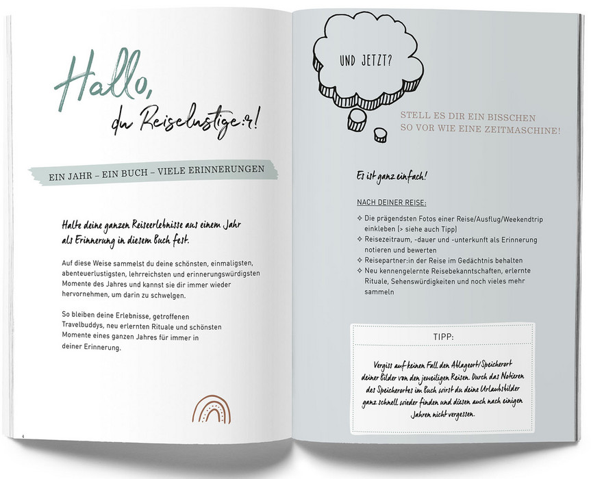Dieses liebevoll gestaltete Erinnerungsbuch hält alle Reisen für ein ganzes Jahr, aufgeteilt nach Monaten fest, um die schönsten und erlebnisreichsten Augenblicke nicht zu vergessen. Durch das nachträgliche Ausfüllen erlebter Reisen werden die TravelMemories zu einmaligen Momente-Bewahrern, die Zuhause immer wieder gerne für Reiserückblicke zur Hand genommen werden können. Die liebevoll gestalteten 136 Seiten bieten zudem viel Platz, um Reiseorte, Geschichten, Erinnerungsstücke und ein Resümee der jeweiligen Reisen festzuhalten sowie Urlaubsfotos einzukleben. Zusätzliche inspirierende & praktische Listen sowie freie Seiten lassen dabei keine Details vergessen. • Stabiles Hardcover mit praktischem Lesebändchen • Blanko Sticker für individuelle Cover-Gestaltung • Cleanes Design und schöne Illustrationen • Gut beschreibbares Papier • Ideales (Abschieds-)Geschenk.