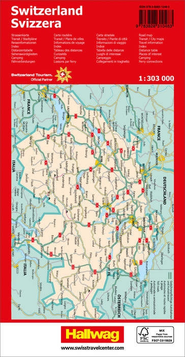 Die eingeklebte sechssprachige Broschüre mit Reiseinformationen, Ortsverzeichnis, Angaben zu Bergen, Seen und Flüssen, Passstrassen, Autoverlad sowie Informationen zu Top-Attraktionen und Sehenswürdigkeiten ergänzt das Kartenwerk perfekt.