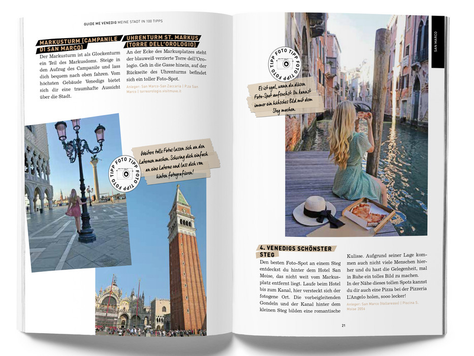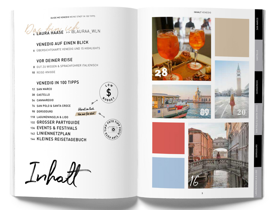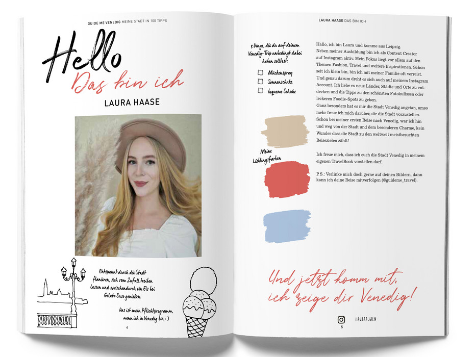 Der Reiseführer einer neuen Generation mit 100 kompakten Tipps. Die Travel-Bloggerin Laura Haase zeigt dir ihre Lieblingsstadt Venedig, und verrät an welcher Ecke man den perfekten Schnappschuss macht oder wo die Pasta am besten schmeckt! Gepaart mit den typischen Must-See-Sights erlebst du Venedig mit diesem Reiseführer einmal ganz anders. Und eins ist garantiert: Dein Instagram-Feed wird heißlaufen! Im modernen Design, mit individuellen Illustrationen und freien Kreativ-Seiten ist der GuideMe Reiseführer Venedig dabei auch ein echter Hingucker und stylischer Begleiter.