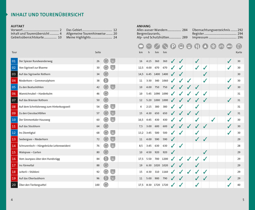 Der Band von Wolfgang Heitzmann zeigt 70 Touren vom Ursprung der Aare in der Nähe des Grimselpasses bis ins Saanenland an der Sprachgrenze zur Romandie, von den Waldhügeln um den Thunersee bis zu den Gletschergipfeln am Hauptkamm der Berner Alpen.