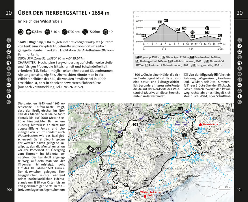 Die Kartenausschnitte im Führer wie auch die extra Tourenkarte enthalten detaillierte topografische Informationen wie Höhenlinien sowie Höhenangaben zu Berggipfeln, Pässen und grösseren Seen und gibt dadurch eine präzise Abbildung vom Gelände. Wanderer erhalten dadurch einen besonders realistischen Eindruck der Landschaft.