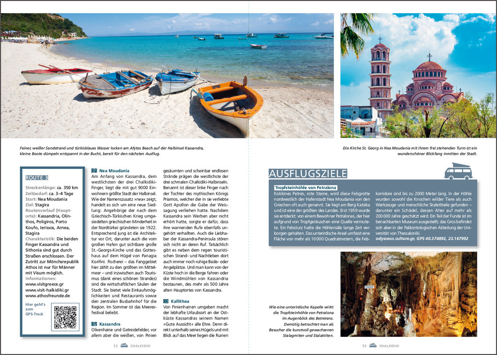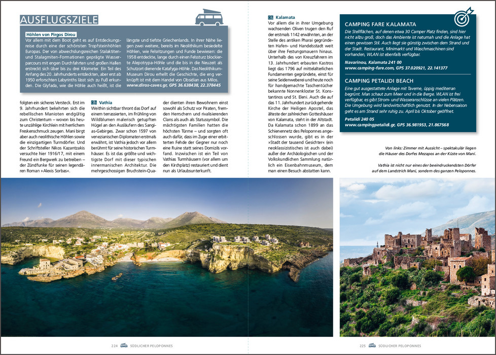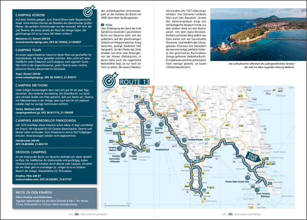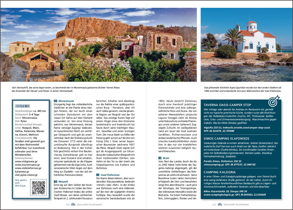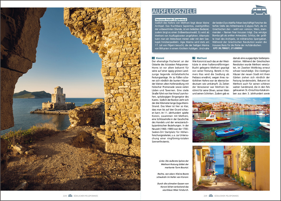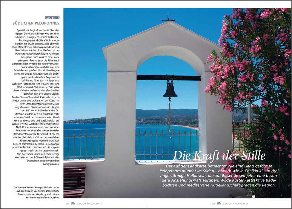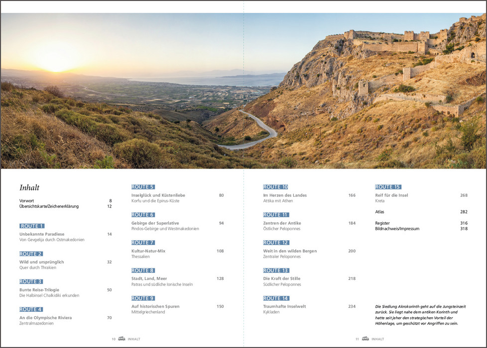 Es gibt kaum ein Land, das mehr dafür prädestiniert ist, es mit dem Wohnmobil zu bereisen als Griechenland. Paradiesische Landschaften umgeben von der tiefblauen Ägäis, antike Stätten wie Delphi oder Mykene, die berühmten Meteora-Klöster, pulsierende Metropolen wie Athen oder Thessaloniki oder verwunschene Fischerdörfer, in denen die Uhren noch ein wenig langsamer zu ticken scheinen als anderswo. Dazu kommt das köstliche Essen mit frischen Meeresfrüchten, Lamm, Mezédes und Oliven und natürlich einem eiskalten Ouzo, dem griechischen Nationalgetränk. Dieses Buch stellt die schönsten Wohnmobilrouten durch das Land vor, führt auf idyllische Stell- und Campingplätze und präsentiert sehenswerte Ausflugsziele rechts und links der Routen.