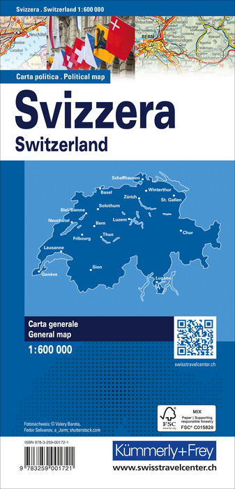 In der Faltkarte Schweiz, Politische Karte 1:600'000 ist die Schweiz mit ihren farblich hervorgehobenen Kantonen dargestellt.