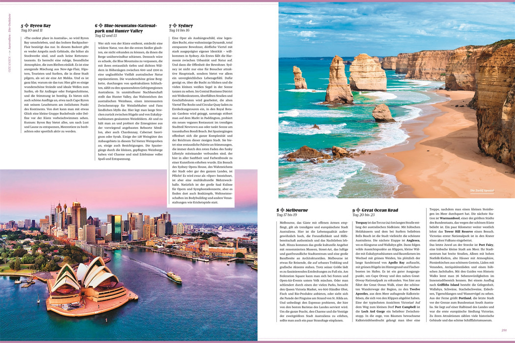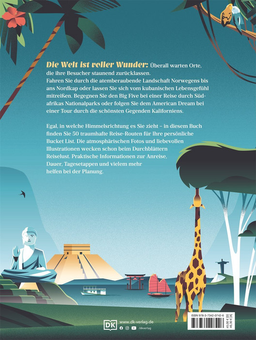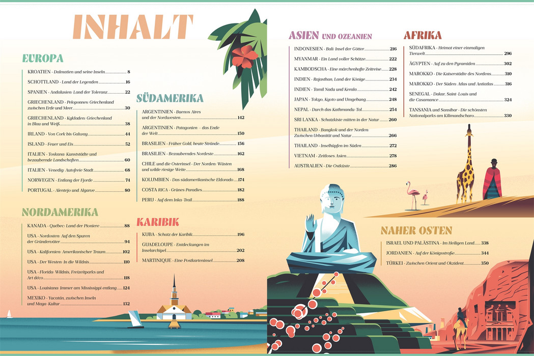 Einmal im Leben die Polarlichter in Island bestaunen, einmal auf einer Afrika-Safari die Big Five in freier Wildbahn sehen und einmal die Pyramiden von Gizeh besuchen: In diesem ganz besonderen großformatigen Reiseführer haben wir für Sie zusammengestellt – mit allen Informationen, die Sie für die Planung und Durchführung Ihrer Traumreise benötigen. Lassen Sie sich von den atmosphärischen Fotos und liebevoll gezeichneten Illustrationen begeistern und finden Sie Ihr nächstes Reiseziel!