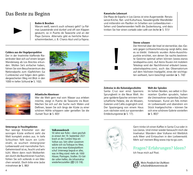 Auf der »steilsten Insel der Welt« und der grünsten der Kanaren sind die Palmeros ein feierfreudiges Völkchen, und besonders ausgelassen geht es im Karneval zu. Mit den 15 »Direkt- Kapiteln« des Reiseführers von Dieter Schulze können Sie sich zwanglos unter die Palmeros mischen, direkt in das Lebensgefühl auf der kanarischen Atlantikinsel eintauchen, aktiv in der Natur entspannen und die Highlights kennenlernen: bizarre Vulkanlandschaften und dunkle Lavastrände, Lorbeerwälder und Salzgärten, das quirlige Santa Cruz und die Weinroute, das Erbe der altkanarischen Ureinwohner und die schmackhafte Inselküche. Dank vieler Tipps und Adressen erfahren Sie, wo es sich in fremden Betten gut schläft, wo Sie glücklich satt werden, wohin die Palmeros zum Stöbern und Entdecken gehen und wohin es sie zieht, wenn die Nacht beginnt. Mit den Übersichtskarten, genauen Stadtplänen und dem separaten großen Faltplan können Sie nach Lust und Laune La Palma erkunden.