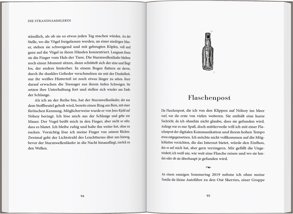 ES HEISST, WER EINE SEEBOHNE FINDET, dem bringt sie Glück. Seit Jahrhunderten werden die braunen Samen, die durch Meeresströmungen von den Tropen bis nach Europa gelangen, als Zaubermittel verehrt und als Amulette getragen.  Sallys Suche nach einer Seebohne beginnt kurz nach ihrem Umzug auf eine Shetland-Insel, wo sie mit der neuen Umgebung und einer chronischen Krankheit zu kämpfen hat. Bei Spaziergängen am Strand entdeckt sie ihre Leidenschaft für alles, was das Meer an die Küste spült:  Meeresvögel, Tierknochen, Meerglas oder Flaschenpost. Sie geht ihren Geschichten nach, stößt auf altes Wissen, macht neue Bekanntschaften mit Menschen und Inseln. Und sie sucht weiter nach ihrer Seebohne ...
