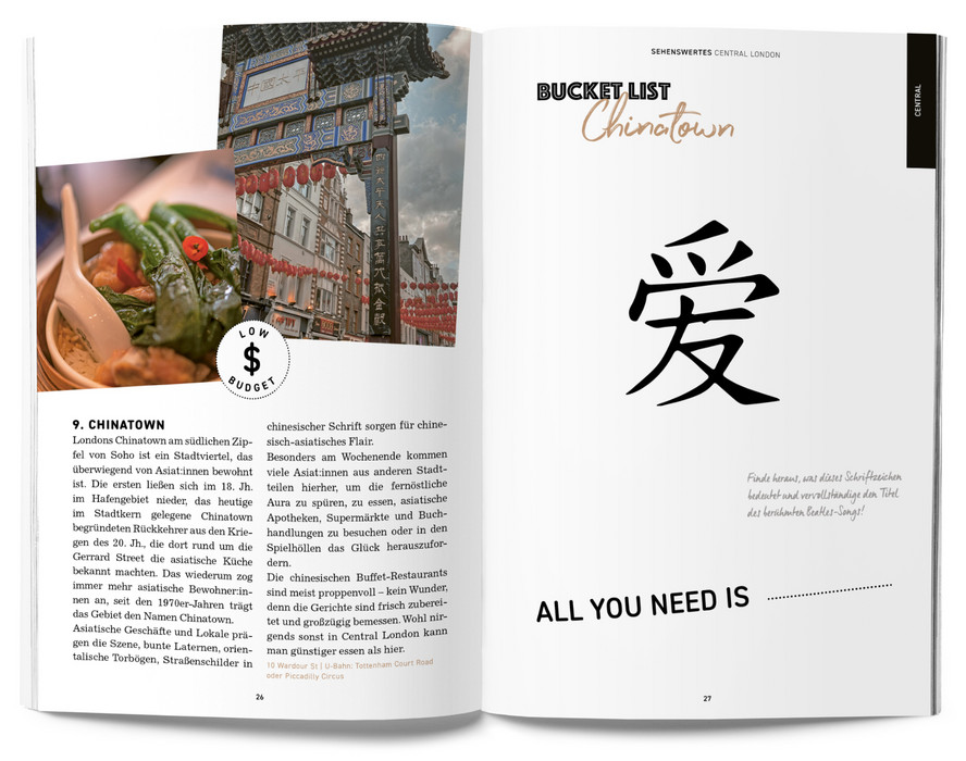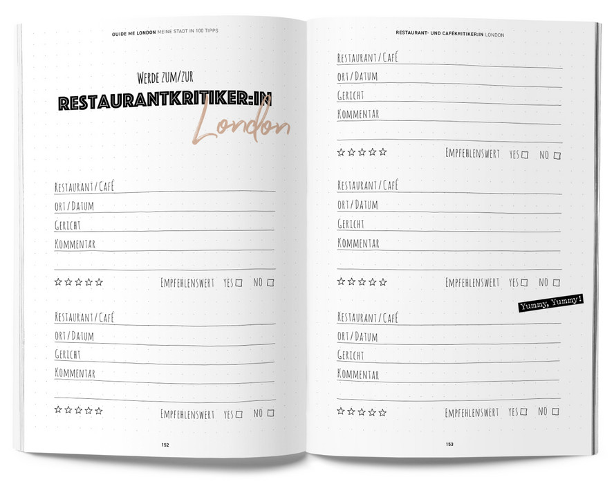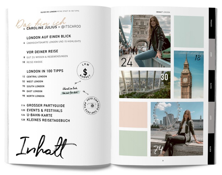 Blogger-Tipps | Foto-Hotspots | klassische Sehenswürdigkeiten | Restaurants & Cafés | Shopping | Clubs & Bars | Events & Festivals | Kreativ-Teil zum selber ausfüllen | freie Seiten | Reiseführer mit herausnehmbarer City-Map