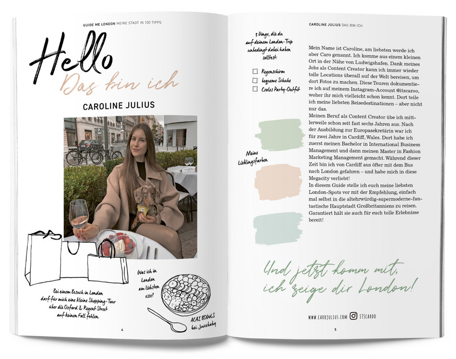 Der Reiseführer einer neuen Generation mit 100 kompakten Tipps. Die Travel-Bloggerin Caroline Julius zeigt dir ihre Lieblingsstadt London, und verrät an welcher Ecke man den perfekten Schnappschuss macht oder wo die Açai Bowl am besten schmeckt! Gepaart mit den typischen Must-See-Sights erlebst du London mit diesem Reiseführer einmal ganz anders. Und eins ist garantiert: Dein Instagram-Feed wird heißlaufen! Im modernen Design, mit individuellen Illustrationen und freien Kreativ-Seiten ist der GuideMe Reiseführer London dabei auch ein echter Hingucker und stylischer Begleiter.