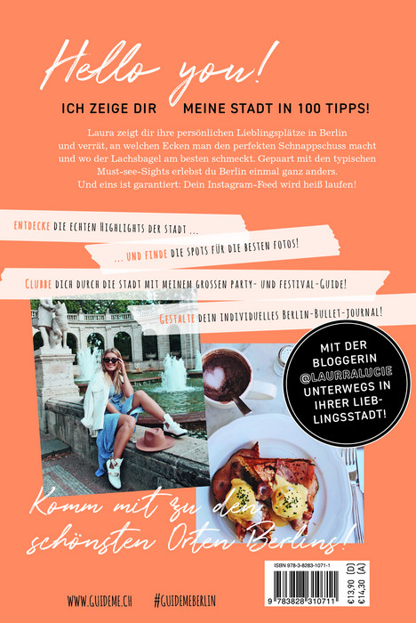 Der Reiseführer einer neuen Generation mit 100 kompakten Tipps. Die Travel-Bloggerin Laura Lucie zeigt dir ihre Lieblingsstadt Berlin, und verrät an welcher Ecke man den perfekten Schnappschuss macht oder wo die Açai Bowl am besten schmeckt! Gepaart mit den typischen Must-See-Sights erlebst du Berlin mit diesem Reiseführer einmal ganz anders. Und eins ist garantiert: Dein Instagram-Feed wird heißlaufen! Im modernen Design, mit individuellen Illustrationen und freien Kreativ-Seiten ist der GuideMe Reiseführer Berlin dabei auch ein echter Hingucker und stylischer Begleiter.