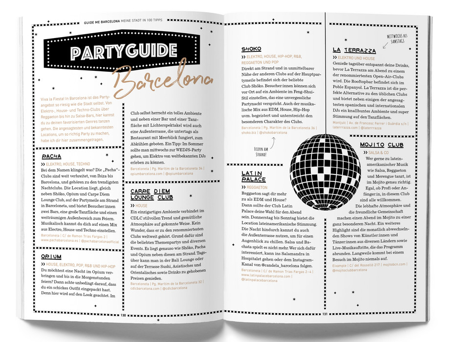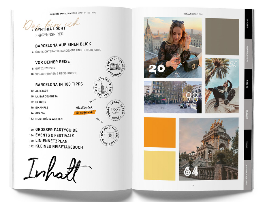 Blogger-Tipps | Foto-Hotspots | klassische Sehenswürdigkeiten | Restaurants & Cafés | Shopping | Clubs & Bars | Events & Festivals | Kreativ-Teil zum selber ausfüllen | freie Seiten | Reiseführer mit herausnehmbarer City-Map