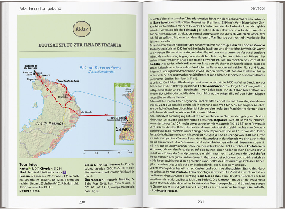 Tauchen Sie gern in die Kultur eines Landes ein oder gehen Sie lieber auf Entdeckungsreise in der Natur? Mit dem umfangreichen Handbuch von DuMont kommen Sie in jedem Fall auf Ihre Kosten. Alle Regionen und Städte werden ausführlich beschrieben und von den Autoren kommentiert. Ausgewählte Aktivtouren führen Sie zu Fuß oder mit dem Boot zu den spektakulärsten Naturerlebnissen. Viele praktische Tipps erleichtern Ihnen die Planung Ihrer Ausflüge. Mit dem kompakten Sprachführer haben Sie immer die richtigen Worte parat, um mit Einheimischen ins Gespräch zu kommen. Lassen Sie sich von der Leichtigkeit der Brasilianer anstecken und sammeln Sie unvergessliche Eindrücke von Rio bis zum Amazonas!