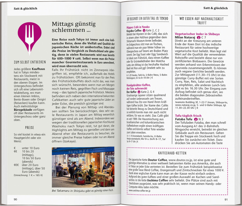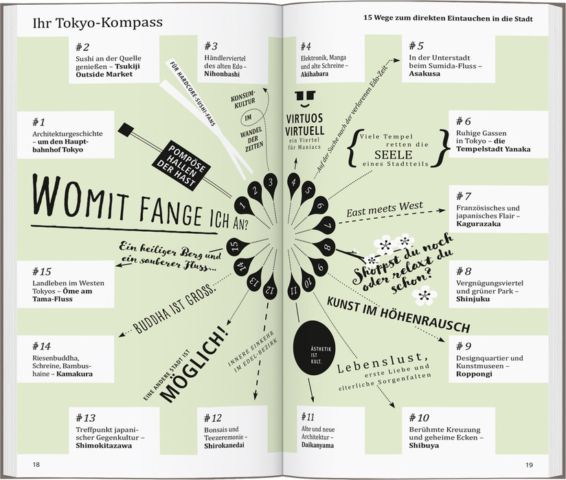 Wie ihre Megacity – zwischen Tradition und High-Tech, uralten Tempeln und hypermodernen Hochhäusern – sind auch die Tokyoter selbst tief in ihrer Kultur verwurzelt, technikverliebt und naturverbunden zugleich. Mit den 15 »Direktkapiteln« des Reiseführers von Rufus Arndt können Sie sich zwanglos unter die Tokyoter mischen, direkt in das Stadtleben eintauchen und die Highlights und Hotspots kennenlernen: Sushi-Kunst, Luxuskaufhäuser und neue Trendviertel, den kaiserlichen Palastgarten und die Tempelstadt Yanaka, »Klein-Paris« im Stadtteil Kagurazaka, japanische Gegenkultur oder spannende Museen. In eigenen Kapiteln erfahren Sie, wo es sich in fremden Betten gut schläft, wo Sie glücklich satt werden, wohin die Tokyoter zum Stöbern und Entdecken gehen und wohin es sie zieht, wenn die Nacht beginnt. Mit den Übersichtskarten, genauen Stadtteilplänen und dem separaten großen Cityplan können Sie sich nach Lust und Laune durch die Stadt treiben lassen.