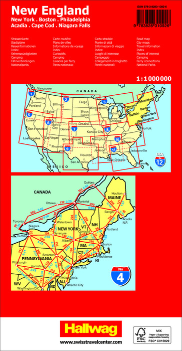 In der Hallwag Strassenkarte Amerika - New England im Massstab 1:1 Mio. finden Sie alles was Sie zur Orientierung und Inspiration brauchen.