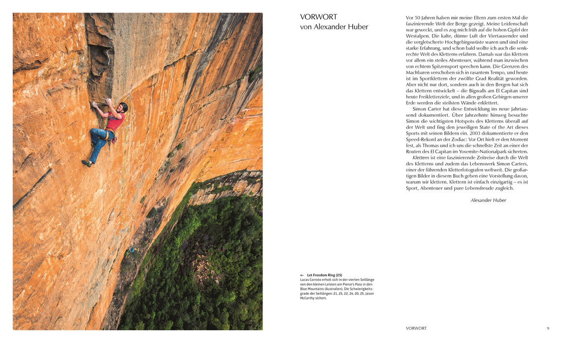 • Ein zu den besten Kletterspots & Kletterrouten der Welt • von Simon Carter – einem der führenden Kletterfotografen weltweit • Persönliche , wie z.B. Adam Ondra, sowie einem Vorwort vom "Huberbuam" Alexander Huber • Mit zur Inspiration für den nächsten Kletterurlaub Von senkrechten Granit-Wänden und ausgesetzten Kanten über monumentale Felsblöcke und enge Kamine bis zu schwindelerregenden Hängen über dem Meer: Dieser Bildband entführt Sie an und offenbart eindrucksvoll die Leidenschaft und Anziehungskraft des Felsen-Kletterns in der freien Natur. In versammelt Outdoor-Fotograf Simon Carter im Buch seine schönsten Kletter-Fotografien, die menschliche Spitzenleistungen an majestätischen Abenteuerschauplätzen der Erde festhalten. Begleitet werden die Bilder von in denen Kletter-Legenden und -Profis ihre Erfahrungen und Herausforderungen beim Klettern teilen, und verraten, was sie immer wieder antreibt, die Grenzen des Möglichen zu überschreiten.
