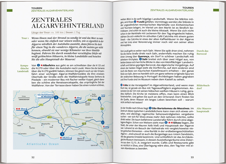 Sie wollen nach an Europas Südwestspitze reisen, dort, wo das Land endet und das Meer beginnt? Unser Baedeker führt Sie an orange leuchtende Steilküsten, endlose Strände und entzückende Hafenstädte. Erleben Sie sowohl die wilde Natur der Westküste als auch die entspannte Stille der Ostalgarve. Bummeln Sie durch die wunderschönen Gassen von und machen Sie eine Bootsfahrt zu den Felsen der Ponta da Piedade. Lassen Sie sich durch das Nachtleben von treiben und vergessen Sie nicht, auch in der Hauptstadt der , einen Stopp einzuplanen mit ihrer weißen Altstadt und der Küstenlagune Rio Formosa. Wir zeigen Ihnen die schönsten Reiseziele und liefern Ihnen drei inspirierende Tourenvorschläge für Ihren . Mit unseren für Ihre entdecken Sie das Außergewöhnliche hinterm Horizont, Orte zum Durchatmen und Ihren magischen Sonnenuntergangmoment.