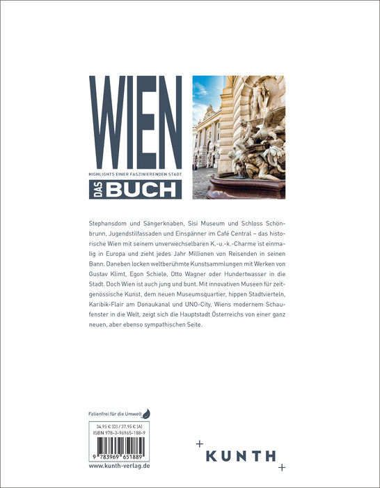 Architektur, Musik und Kunst – Wien ist und inspiriert mit ihrem . Jugendstil, die jüdische Gemeinde und die Habsburger Monarchie hinterließen ihre Spuren in Stadtbild und . Großformatig fangen die Fotografien des KUNTH-Bildbands „Wien. Das Buch“ diese Melange ein und laden zum Schwelgen ein. Dabei lässt sich neben den Klassikern wie Schloss Schönbrunn und Stephansdom auch weniger bekanntes wie das Wiener Straßenbahnmuseum oder die Hermesvilla entdecken. Themenseiten widmen sich dem Leben und Wirken berühmter Wiener.