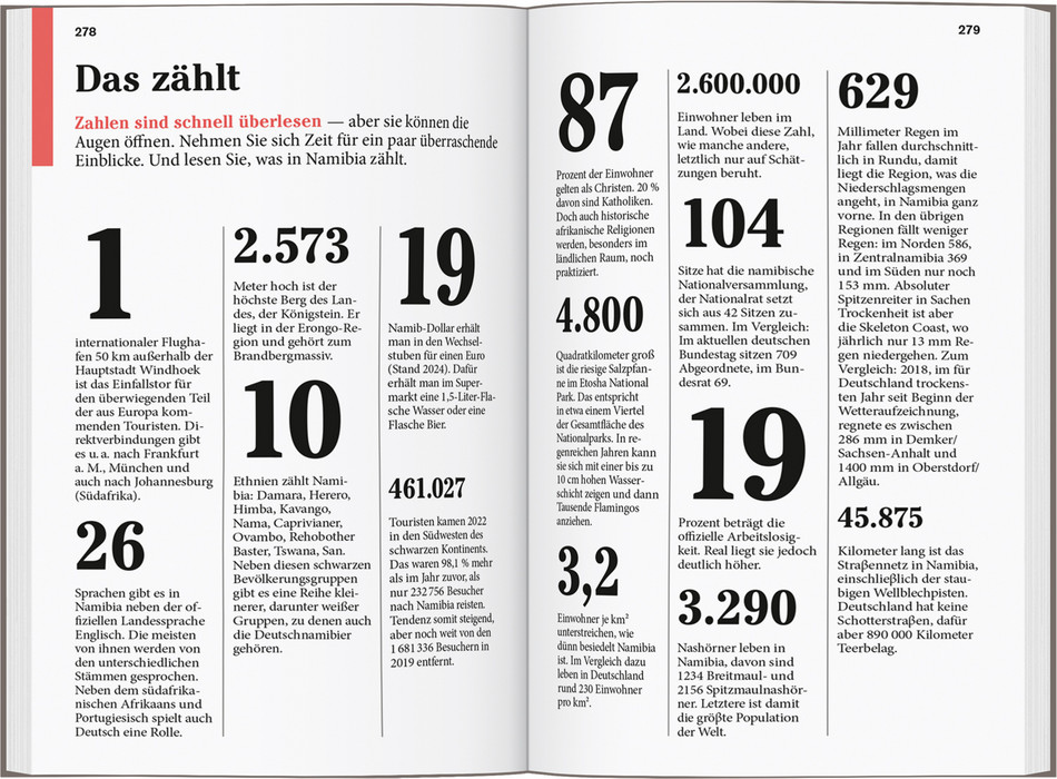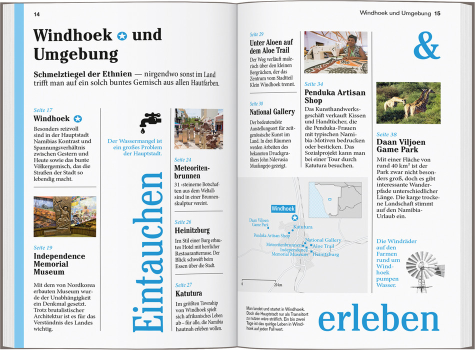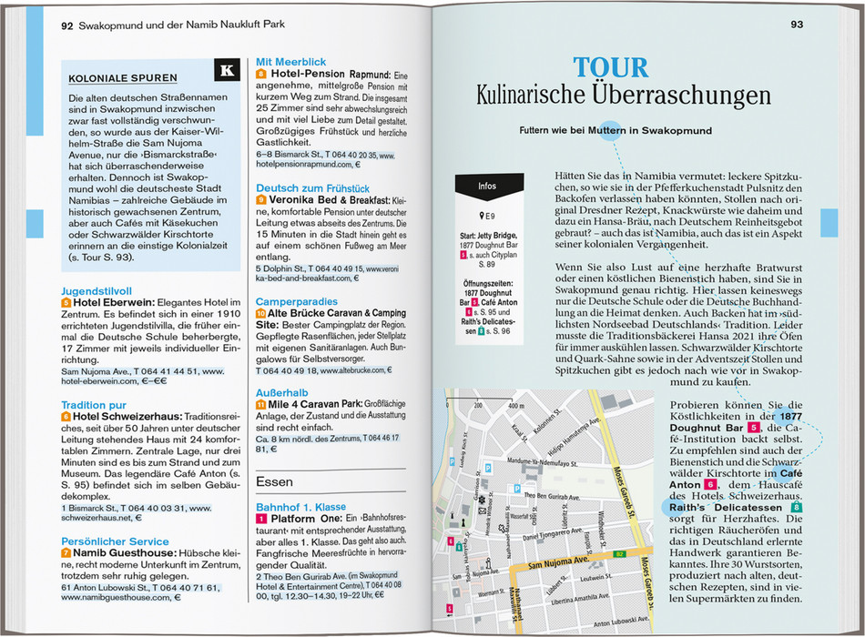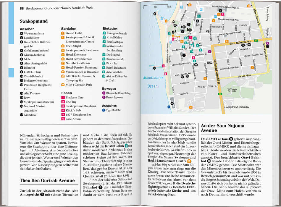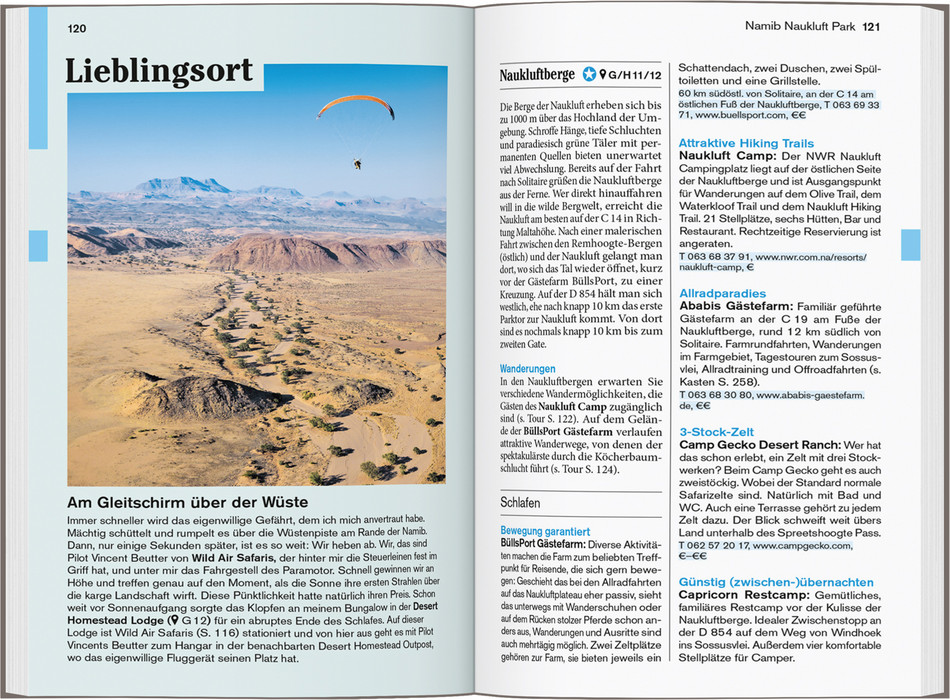• Die Karten: 4 Citypläne, 21 Tourenkarten, Übersichtskarte mit den Highlights Namibias, Schnellüberblick zu jeder Region plus eine große Reisekarte