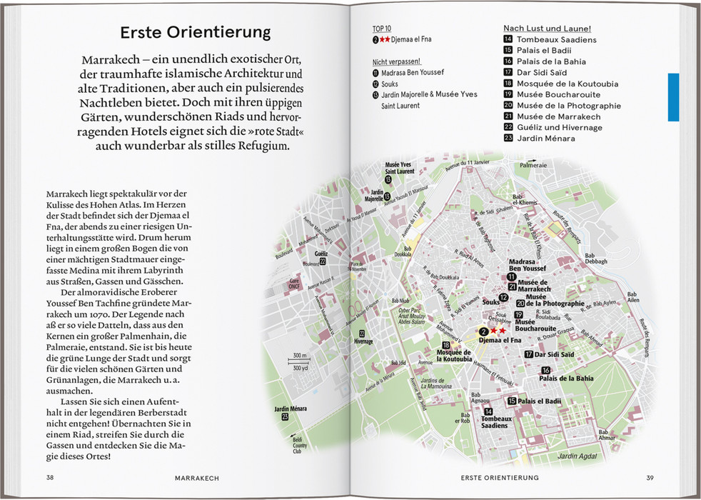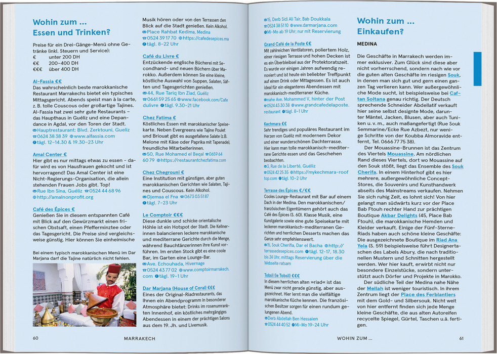 - Tipps für genussvolle »kleine Pausen« in Cafés, Restaurants oder Bars und »magische Momente« in Marokko