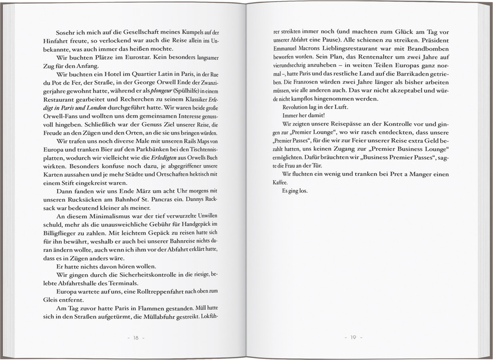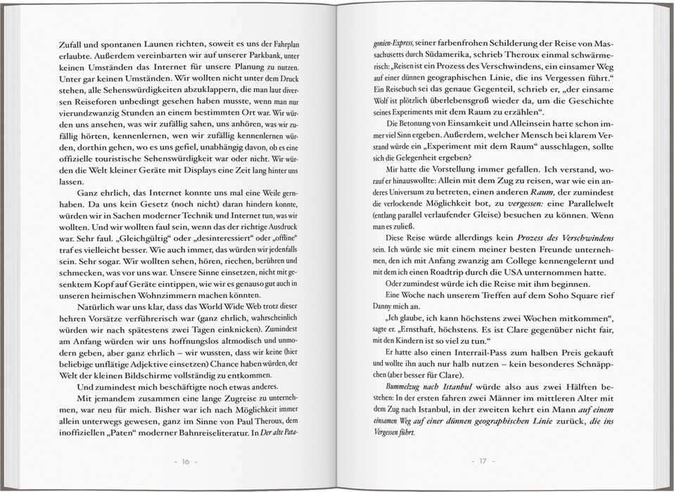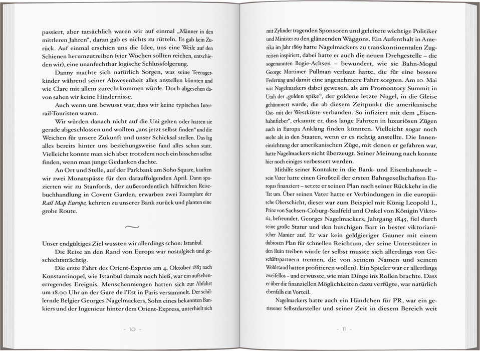 ALLES STEHEN UND LIEGEN LASSEN, in den Zug steigen und ans Ende Europas fahren – genau das haben Tom und Danny gemacht. Mit einem Interrail-Ticket in der Tasche begeben sich die beiden Herren mittleren Alters auf eine unterhaltsame und erhellende Low-Budget-Reise quer durch unseren Kontinent. In 55 Zügen geht es von London über Paris, Nürnberg, die Schweizer Alpen, Budapest und Athen bis in die entlegensten Winkel Osteuropas nach Istanbul und wieder zurück. Sie erleben Bahnstreiks, zwängen sich in Schlafwagen, verirren sich und bleiben an der Grenze stecken. Sie sinnieren über die vorbeiziehenden Landschaften – wie einst die ersten Reisenden des Orient-Express. Und trinken dabei sehr viel Rotwein. Ihr Fazit: Eine wirklich angenehme Sache, dieses Zugreisen.