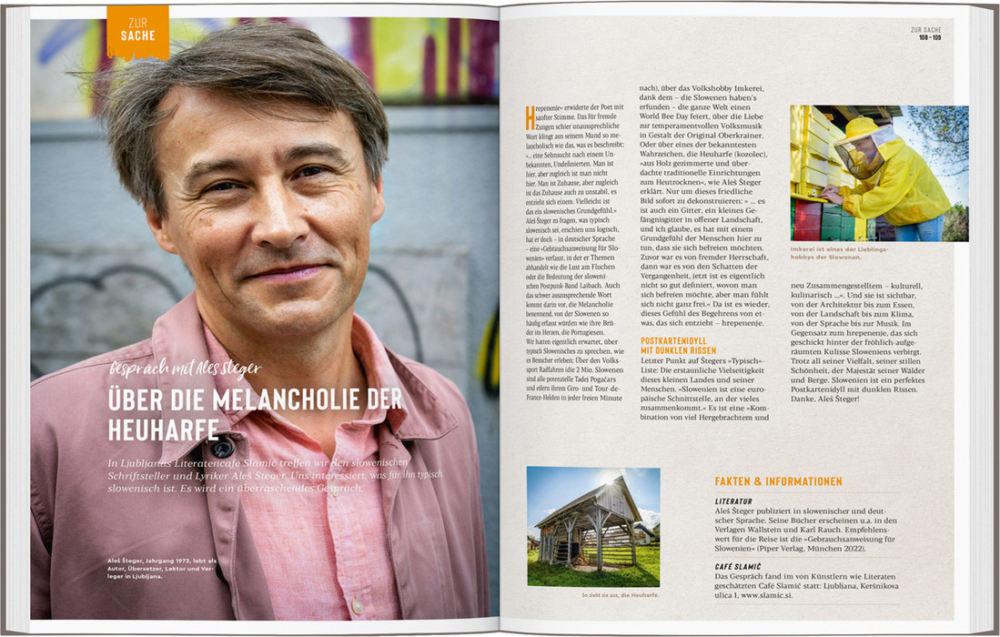 WER NACH SLOWENIEN REIST, muss sich nicht entscheiden: Meer oder Berge, unberührte Natur oder Stadtambiente, Eintauchen in Traditionen oder Moderne. Das kleine Land zwischen Alpen und Adria hat einfach alles. Und das auf vergleichsweise kleinem Raum. So kann, wer möchte, morgens in der charmanten Hauptstadt Ljubliana shoppen gehen oder auf den Spuren des Architekten Josef Plecnik wandeln, nachmittags in den Postojna-Höhlen in die geologische Unterwelt hinabsteigen, und abends ein Essen an der Uferpromenade von Piran mit Blick aufs Meer genießen. Die besten Tipps für diese und andere Aktivitäten verrät Daniela Schetar-Köthe, die dank familiärer Wurzeln Land und Leute so gut kennt wie vermutlich wenige Reisejournalisten. Slowenien ist für sie "Heimat riechen und schmecken, auch hören und verstehen". Imke Lass, die Fotografin dieses Heftes, hat mehrmals den weiten Weg von Hamburg auf sich genommen, um die schönsten Seiten von Slowenien einzufangen.