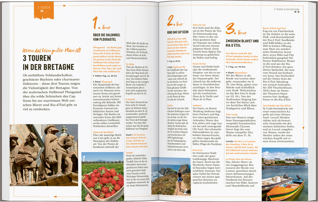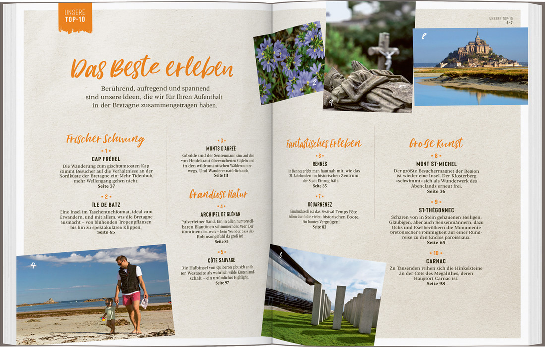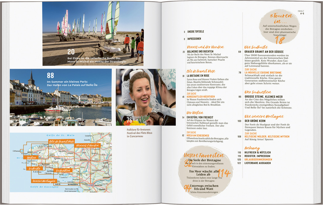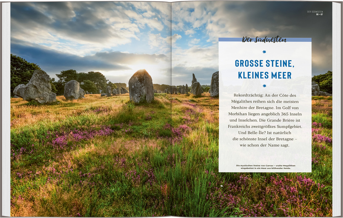 Wer in die Bretagne reist, muss das Meer mögen. Es ist allgegenwärtig. Kein Ort ist weiter als 60 km von der Küste entfernt. Und diese erreicht mit ihren unzähligen Buchten und Halbinseln immerhin die stattliche Länge von 2700 km. Mit der Bucht des berühmten Klosterbergs Mont St-Michel beginnt im Nordosten die Bretagne. Rennes überrascht mit einem Mix aus Fachwerk, barocker Pracht und futuristischem Beton. An der Côte des Mégalithes reihen sich die Hinkelsteine, und an den Klippen im Westen der bretonischen Halbinsel warten Austernbänke sowie die unendliche Freiheit des Meeres. Hier endet das französische Festland – danach kommt nur noch Wasser bis zum Horizont.