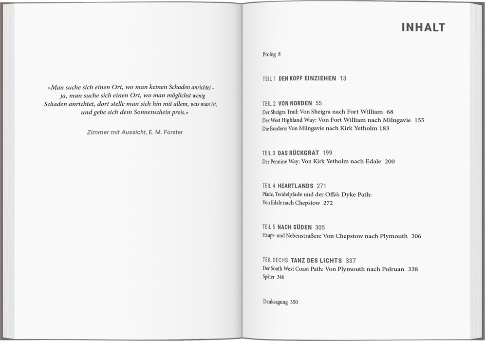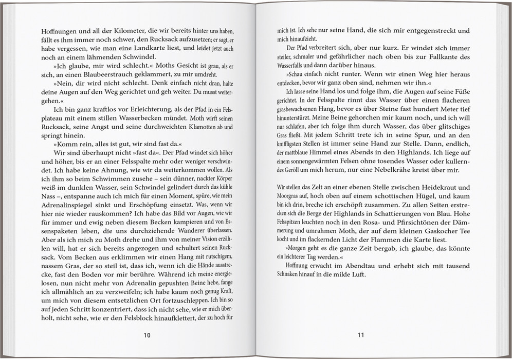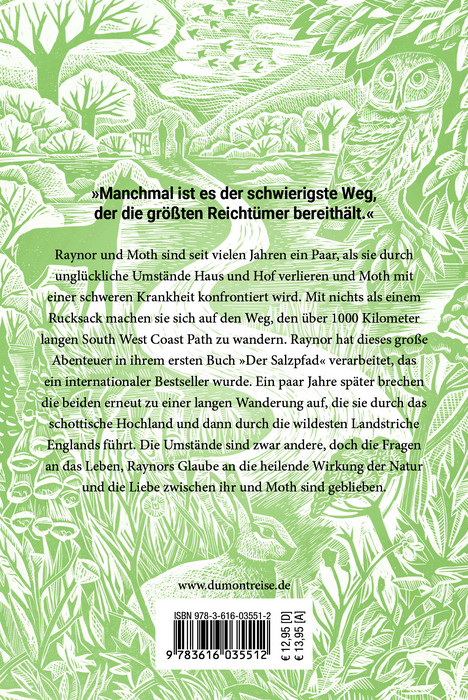 RAYNOR UND MOTH sind seit vielen Jahren ein Paar, als sie durch unglückliche Umstände Haus und Hof verlieren und Moth mit einer schweren Krankheit konfrontiert wird. Mit nichts als einem Rucksack machen sie sich auf den Weg, den über 1000 Kilometer langen South West Coast Path zu wandern. Raynor hat dieses große Abenteuer in ihrem ersten Buch „Der Salzpfad“ verarbeitet, das ein internationaler Bestseller wurde. Ein paar Jahre später brechen die beiden erneut zu einer langen Wanderung auf, die sie durch das schottische Hochland und dann durch die wildesten Landstriche Englands führt. Die Umstände sind zwar andere, doch die Fragen an das Leben, Raynors Glaube an die heilende Wirkung der Natur und die Liebe zwischen ihr und Moth sind geblieben.