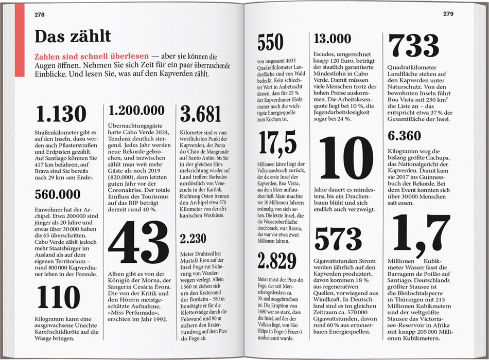 Reif für die Insel? Aber für welche? Jede der Kapverden-Inseln ist ein eigener Kosmos in der Einsamkeit des Atlantiks. Überall gibt es Orte mit marode-kolonialem Charme, aus der Zeit gefallene Dörfer, bunte Märkte und herzliche Einheimische, die nicht nur bei ihrer Ouril-Passion zu Meistern der Muße werden. Jede Insel versprüht ein ganz eigenes Ambiente, das die Autoren Susanne Lipps und Oliver Breda auf zahlreichen Touren und Lieblingsorten einfangen. Mal sattgrün, mal karg und fast immer steil ragt das Wanderparadies Santo Antão empor, wo ein Original zur Vesper bittet und eine Wanderführerin die Schönheit der Landschaft besingt. Höchsten Genuss verspricht auch das gebirgige São Nicolau, wo der archipelweit größte Drachenbaum-Hain sprießt. Ein bizarres vulkanisches Antlitz zeigt Fogo; blumig-bunt sprießt es auf Brava. Wüsten erstrecken sich auf Boa Vista und Sal, wo die bekanntesten Strände locken. Die Autoren geben auch Traumstrände auf anderen Inseln preis, manche so einsam, dass dort Schildkröten ihre Eier ablegen. Sounds ertönen fast überall, doch nirgendwo schlägt das musikalische Herz stärker als in Mindelo auf São Vicente. Besonders laut, bunt und quirlig pulsiert das Leben auf Santiago, der afrikanischsten der Inseln, während Maio viel Einsamkeit und Ruhe verströmt …