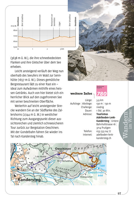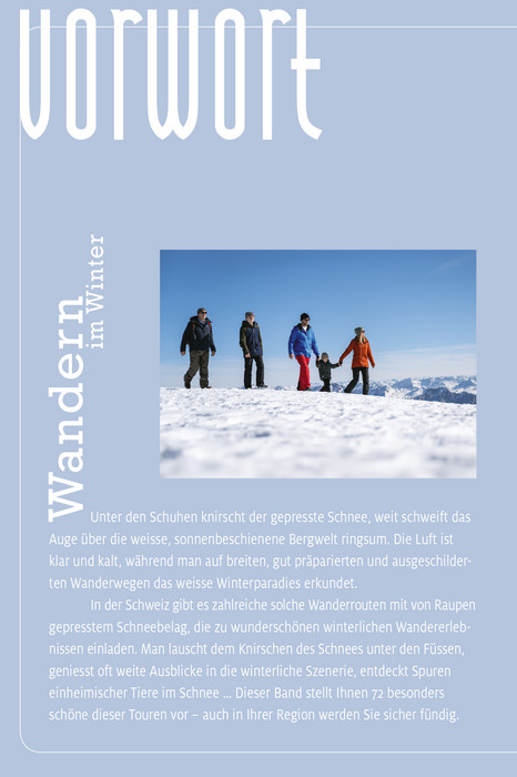 Der neue Band Winterwanderungen führt Sie auf 72 sorgfältig ausgewählten Routen durch verschneite Wälder, entlang vereister Bergseen und zu schönen Bergdörfern in der ganzen Schweiz. Alle aufgeführten Routen sind SchweizMobil-Routen und damit offizielles Angebot von Kantonen und Tourismusregionen.