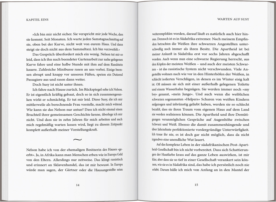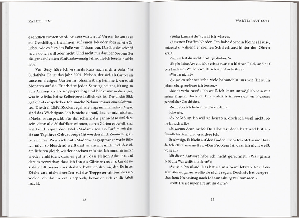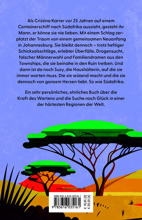 ALS CRISTINA KARRER vor 25 Jahren auf einem Containerschiff nach Südafrika auszieht, gesteht ihr Mann, er könne sie nie lieben. Mit einem Schlag zerplatzt der Traum von einem gemeinsamen Neuanfang in Johannesburg. Sie bleibt dennoch – trotz heftiger Schicksalsschläge, erlebter Überfälle, Drogensucht, falscher Männerwahl und Familiendramen aus den Townships, die sie beinahe in den Ruin treiben. Und dann ist da noch Susy, die Haushälterin, auf die sie immer warten muss. Die sie wütend macht und die sie dennoch von ganzem Herzen liebt. So wie Südafrika. Ein sehr persönliches, emotionales Buch über das Warten, über Resilienz und die tiefe Liebe zu einem Land, das einen in den Wahnsinn treiben und gleichzeitig sehr glücklich machen kann.