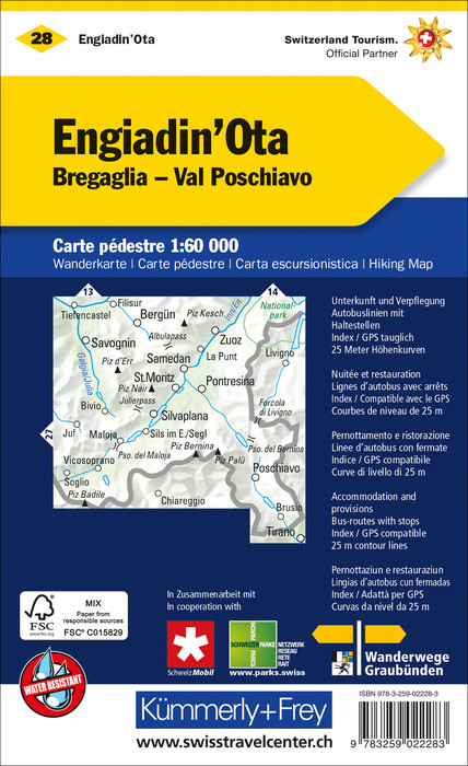 In der Kümmerly+Frey Wanderkarte Oberengadin, Bergell - Puschlav im Massstab 1:60 000 finden Sie alles was Sie zur Orientierung und Inspiration brauchen.