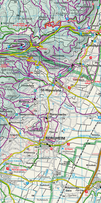In der Kümmerly+Frey Outdoorkarte Elsass, Colmar, Sélestat im Massstab 1:50'000 finden Sie die besten Routen für ganz unterschiedliche Sportarten.