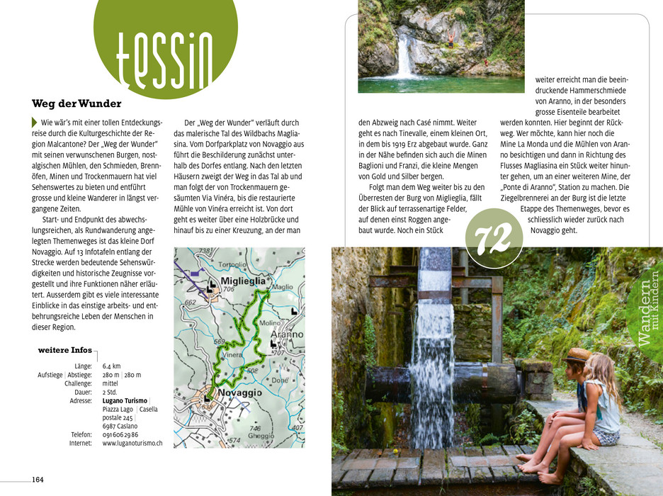 Dank den gut beschriebenen, leicht lesbaren Wandertouren, dem handlichen Format, den übersichtlichen Kartenausschnitten sowie den gekennzeichneten Schwierigkeitsgraden und Tourencharakteren, ist dieser Freizeitführer das perfekte Hilfsmittel, um eine für Sie und Ihre Kinder perfekte Tour zu finden. Die Stimmungsbilder geben zudem einen realistischen Eindruck der Wanderung und der Aktivitäten wieder.
