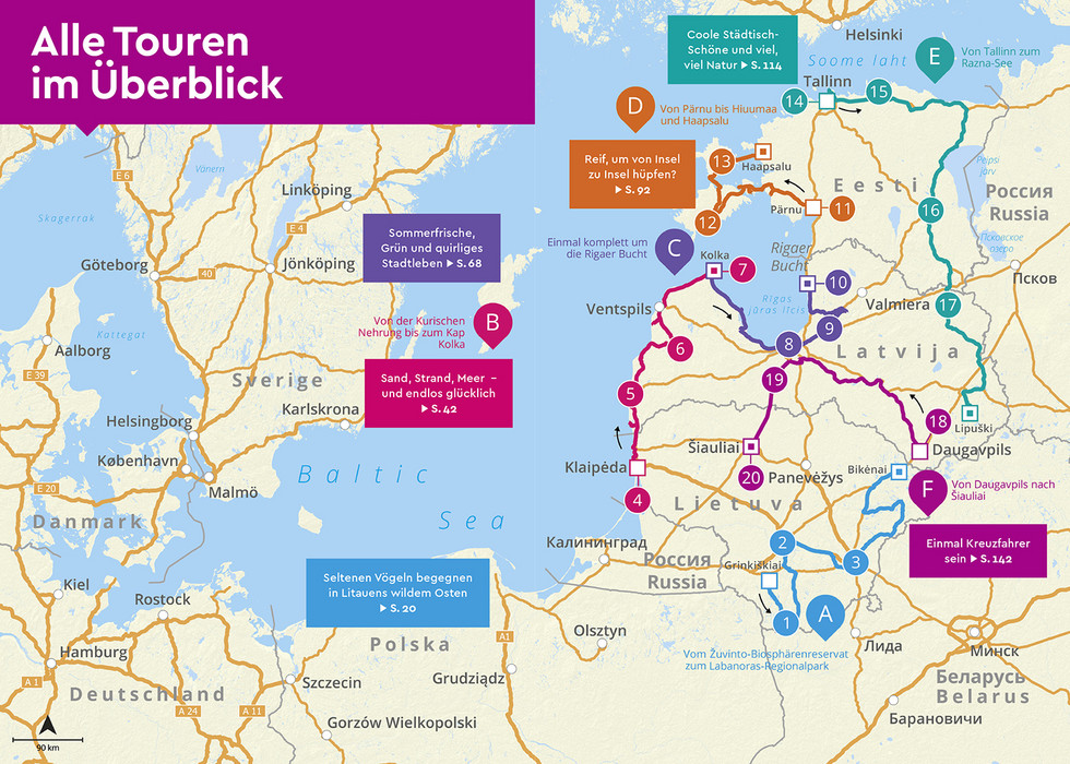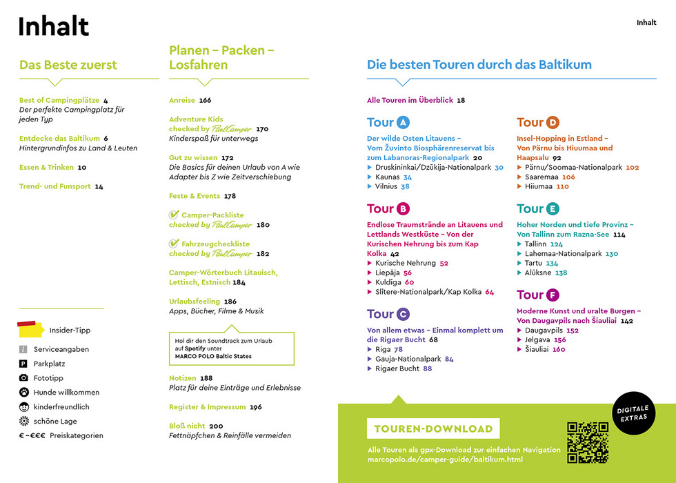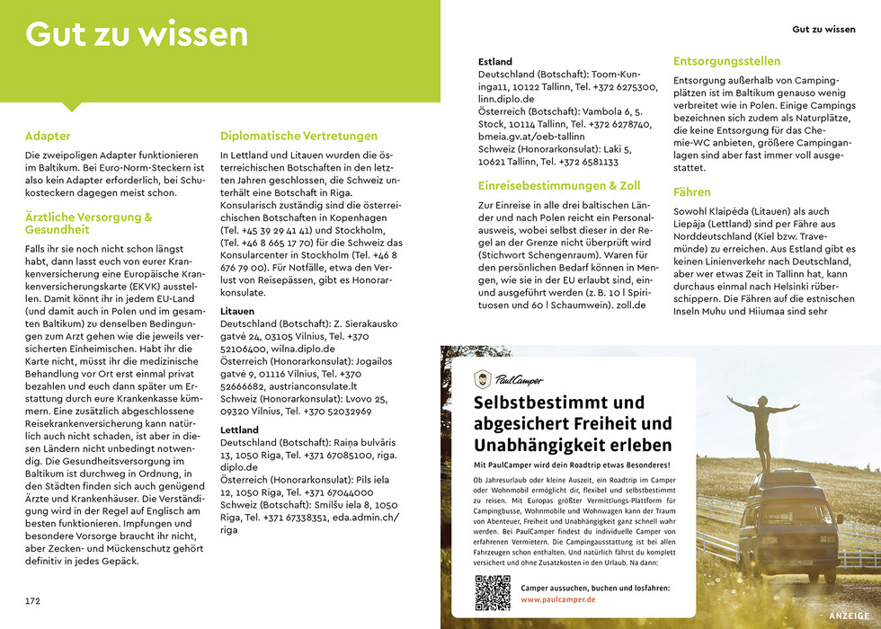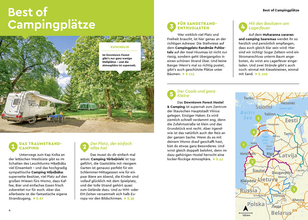 Rundum- Sorglos-Paket: Wissenswertes zum Reiseziel wie das Freistehen, Anreiseinfos inkl. Fährverbindung, Camper-Wörterbuch Litauisch/Lettisch/Estnisch, Camper-Packliste sowie Fahrzeugcheckliste