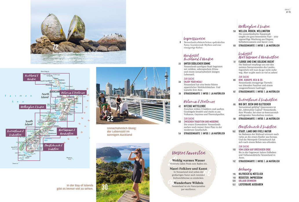 Das Beste zuerst: Doppelseite mit den Highlights des Landes auf einen Blick