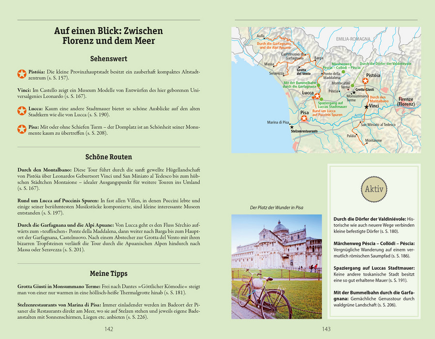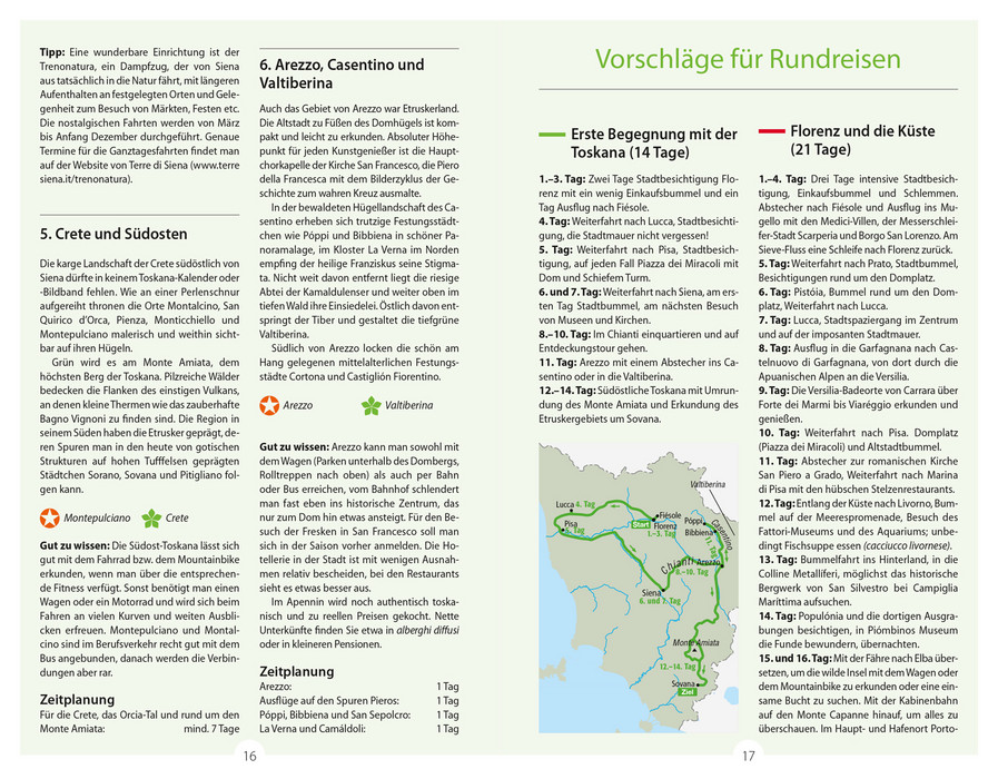 Praktische Planungshilfe mit Tourenvorschlägen für Rundreisen durch die einzelnen Regionen und die ganze Toskana