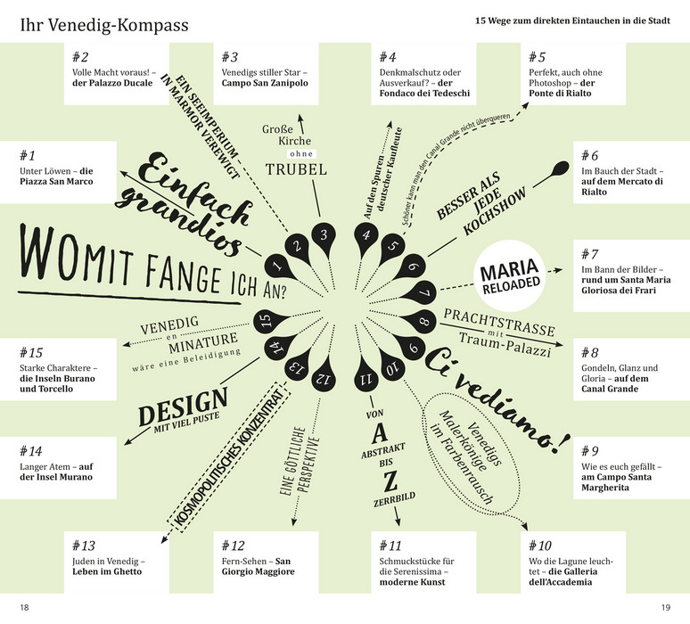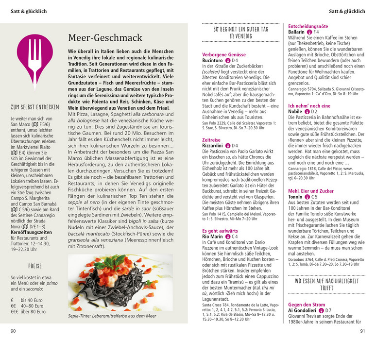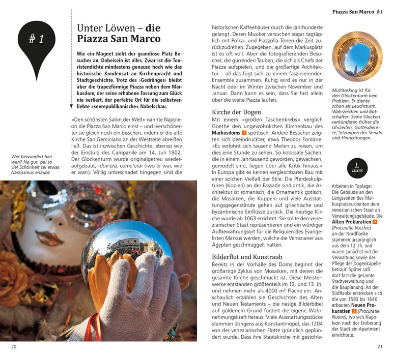 In ihrer auf dem Wasser gebauten Lagunenstadt leben die Venezianer inmitten von moderner Kunst, prunkvollen Palazzi und Kirchenpracht, vollkommener Eleganz und allgegenwärtigem Zerfall, Schönheit und Vergänglichkeit. Mit den 15 »Direkt-Kapiteln« des Reiseführers von Gabriella Vitiello und Frank Helbert können Sie sich zwanglos unter die Venezianer mischen, direkt in das Stadtleben eintauchen und die Highlights und Hotspots kennenlernen: Canal Grande und Rialto-Brücke, Piazza San Marco, Dom und Dogenpalast, das ehemalige Ghetto, die Inseln der Lagune oder spannende Museen. In eigenen Kapiteln erfahren Sie, wo es sich in fremden Betten gut schläft, wo Sie glücklich satt werden, wohin die Venezianer zum Stöbern und Entdecken gehen und wohin es sie zieht, wenn die Nacht beginnt. Mit den Übersichtskarten, genauen Stadtteilplänen und dem separaten großen Cityplan können Sie sich nach Lust und Laune durch die Stadt treiben lassen.