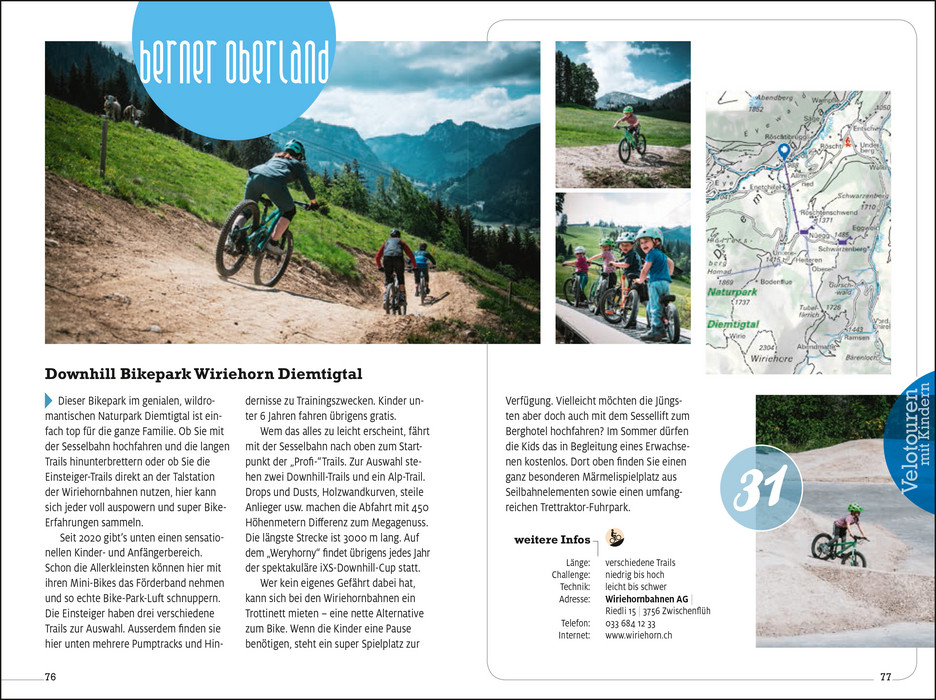 Der Band zeigt 61 inspirierende Touren in der gesamten Schweiz und leitet Sie und Ihre Kids auf kindgerechten und abenteuerlichen Velorouten durch märchenhafte Natur und zu spannenden Entdeckungen am Wegesrand. Neben Tourbeschrieben, Höhenprofilen und Karten gibt's Tiipps zu Aktivitäten unterwegs und am Zielort.