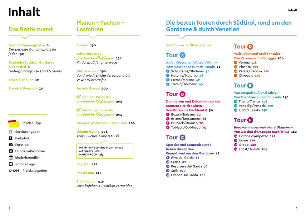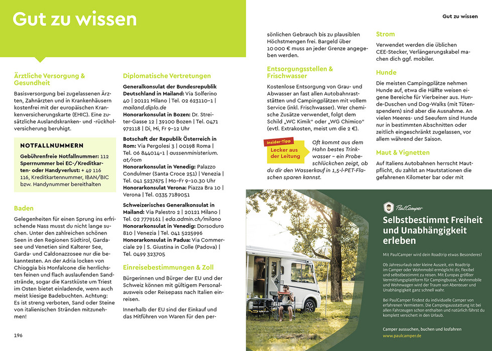 Rundum-Sorglos-Paket: Wissenswertes zum Reiseziel wie das Freistehen, Anreiseinfos, Camper-Wörterbuch Italienisch, Packliste sowie Fahrzeugcheckliste