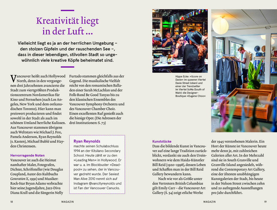 für genussvolle »kleine Pausen« in Cafés, Restaurants oder Bars und »magische Momente« in